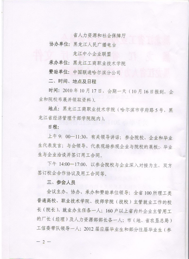关于举办2011年黑龙江省院校学生就业与企业用工合作对接会的通知