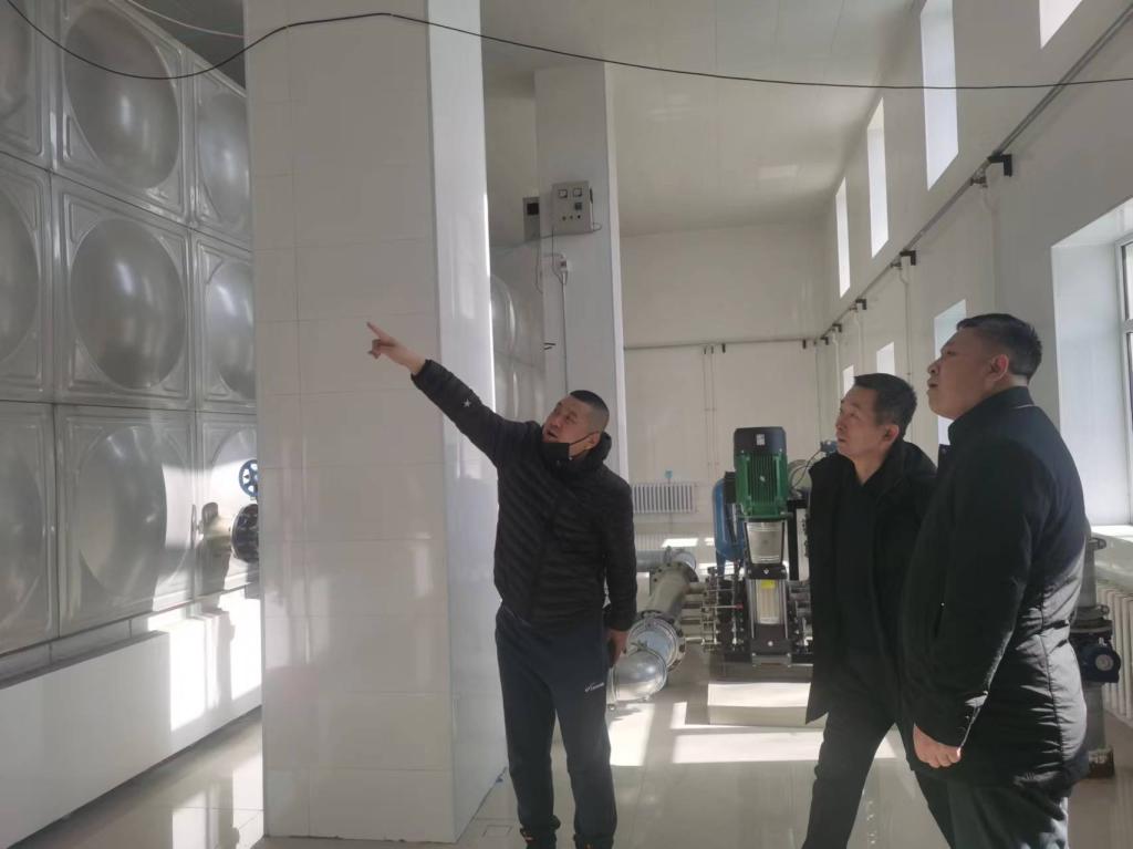 ▲检查组对学校供水情况进行安全检查