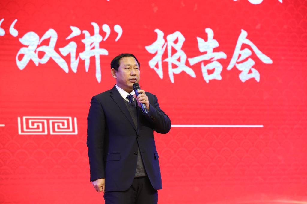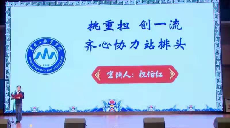 宣讲结束后,学校党委书记赵继会有感而发,即兴演讲。赵继会同大家一起回顾了学校建设国家骨干高职院校、申报创建国家“双高”院校的奋斗历程,一起重温了“龙职”人为实现龙职梦想而艰苦奋斗、励精图治的光辉岁月。赵继会指出,龙职梦想是建设“高职教育名校、继续教育强校”,龙职梦、中国梦同频共振,我们的使命是“当好民族复兴的铺路石”,这是我们的政治信仰和价值追求。龙职灵魂是“当好学生的铺路石”,铺路石品格是“踏实、承重、坚守、开拓”,“铺路石”精神内涵是“家国情怀、工匠品格、进取意识和卓越追求”,在学校各项重大工作中涌现出许许多多身体力行“铺路石”精神的先进人物,他们是“龙职”永远要褒扬的人。龙职品牌是学校优质办学质量并得到社会高度认同的金字招牌,长城内外、大江南北,我们有特色、有优势、有实力,这是我们有底气“山高人为峰”、敢为天下先的自信和担当。赵书记满怀激情的讲话让大家振奋昂扬,干劲倍增,更加坚定了向榜样学习看齐、为实现龙职梦和中国梦自觉奋斗的信念。大家一致认为,龙职梦想、龙职灵魂、龙职品牌,三位一体,顶层设计,守正创新,擎画了学校“十四五”时期的发展蓝图,决心在榜样力量感召下,众志成城,奋力夺取“龙职”全面发展的新胜利!