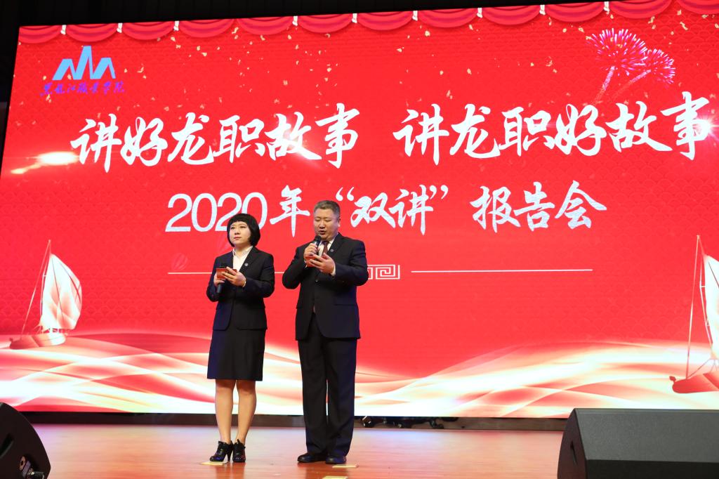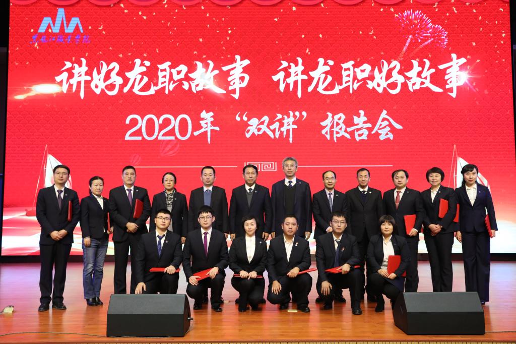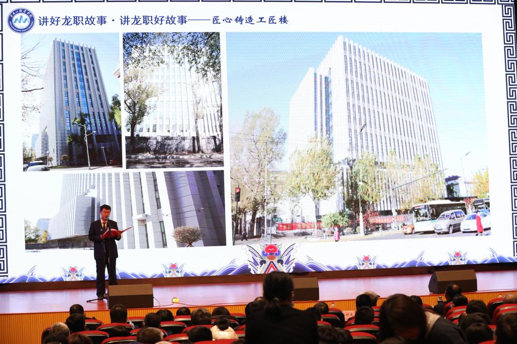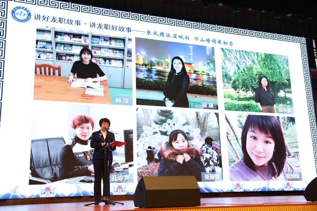 12月23日下午1点,庄严肃穆的工匠楼礼堂隆重热烈,与会教工含着热泪聆听了来自学校不同岗位的12位宣讲人讲述龙职发展建设中发生的感人故事。思政部宣讲人陈桂香讲述思政部教师队伍一路攀登向前,一路收获硕果,演绎学高为师、身正为范的精彩故事。校卫生院宣讲人孟妍讲述龙职天使应对突如其来的新冠疫情,日夜坚守疫情防控一线的故事。科研与校企合作处宣讲人朱晓丹讲述“双高”建设者们呕心沥血,甘于奉献的奋斗历程。组织部宣讲人李伟讲述情洒脱贫攻坚主战场,把“铺路石”精神谱写到基层驻村扶贫的“龙职”人王刚不畏艰辛带领村民脱贫攻坚的故事。教务处宣讲人邢颖讲述“龙职”教学改革队伍历经坎坷初心不改,顽强拼搏打造“龙职”模式与“龙职”经验的故事。学生工作部宣讲人卢丙洋讲述公寓管理人曲艳丽十年坚守,在平凡岗位默默绽放,立德树人、勇于担当的故事。后勤服务中心宣讲人刘广言讲述后勤基建队伍用辛勤和汗水、匠心铸造工匠楼的故事。信息工程学院宣讲人金忠伟讲述创新攻坚,追求卓越,锻造信息人铺路石品格的故事。团委(双创办)宣讲人邹春雷讲述“龙职”双创人凝心创新创业、倾情职业教育、甘为学生铺路的故事。质量监控中心宣讲人祝伯红讲述质量监控队伍勇挑重担,勠力同心,苦干实干,齐心拼搏,打赢诊改试点战的故事。机械工程学院宣讲人范振铎讲述数控技术“双高”专业群建设队伍实事求是,严谨务实,为学校高水平专业群建设提供坚强保证的故事;保卫处宣讲人周万举讲述疫情危机中守护校园平安,胜利完成输送国防建设者庄严使命,获得黑龙江省军区十大最美国防动员人物荣誉的铿锵玫瑰廉清华的故事。