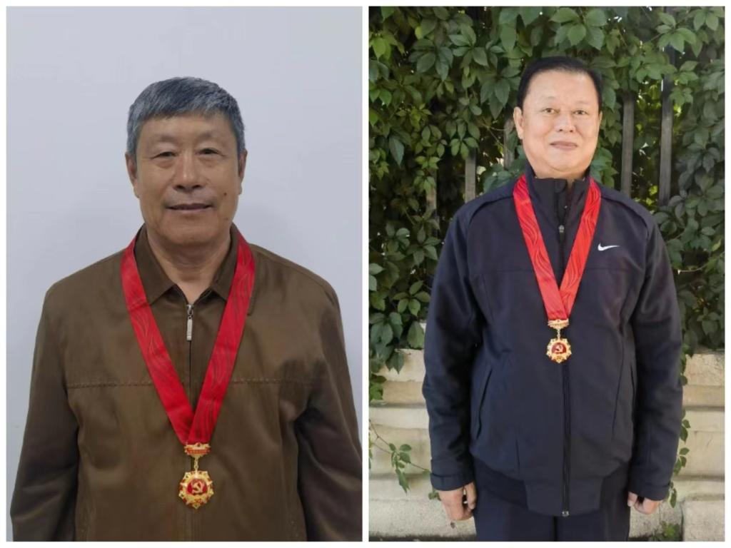 ▲“光荣在党50年”的退休老党员张玉山(左)、解景林(右)