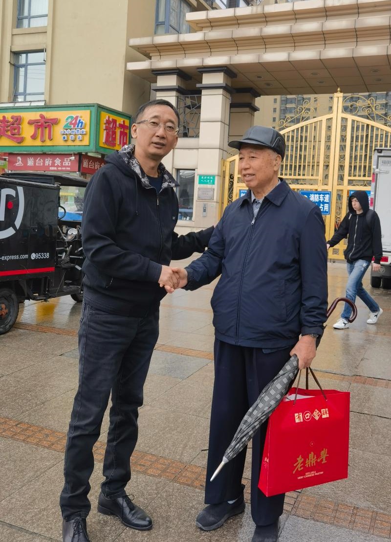 ▲离退休人员工作处副处长杨大勇慰问退休老干部王广学