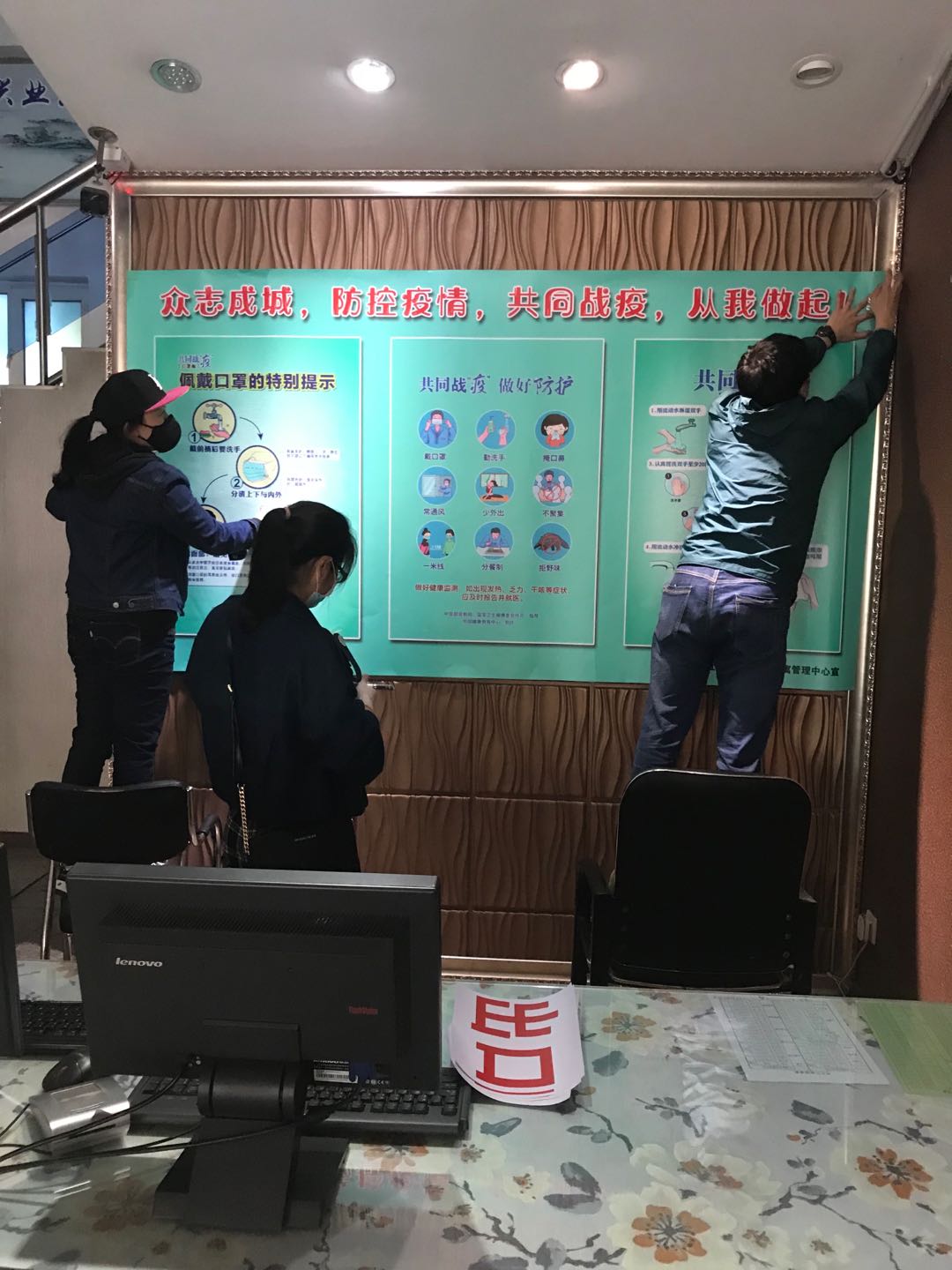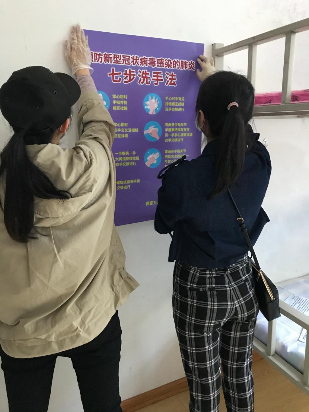 疫情就是命令,防控就是责任。疫情期间,在学生公寓一线的工作人员都在各自的岗位上坚守,积极践行责任与担当,用爱心和责任心,做好基础性保障工作,为学校防疫工作的顺利推进,为打赢这场疫情狙击战,贡献了自己绵薄的力量。公寓管理人员精心制作系列宣传海报,张贴于公寓楼内,宣传新冠肺炎防疫知识,制作宣传条幅,宣誓我们必胜的信心。