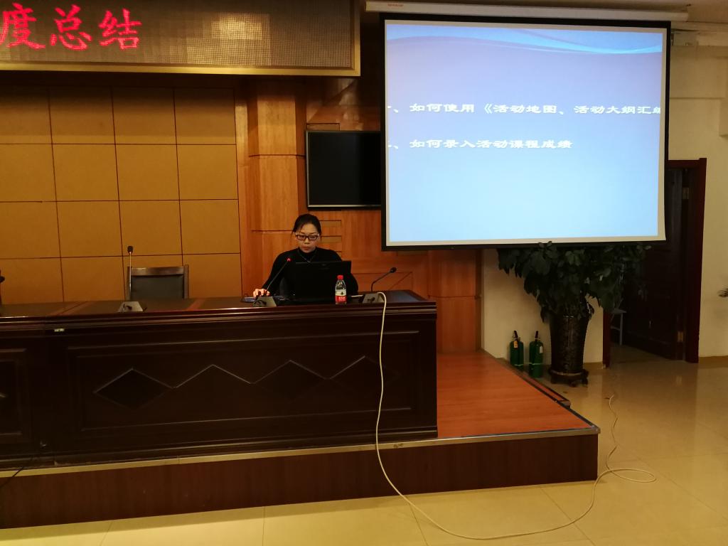 在培训会议上,非正式课程管理科金融鑫对学校的《活动课程管理办法》进行了深入的解读,徐春艳对如何使用《活动地图、大纲汇编》、如何在学工平台录入活动课成绩进行了详细的讲解。