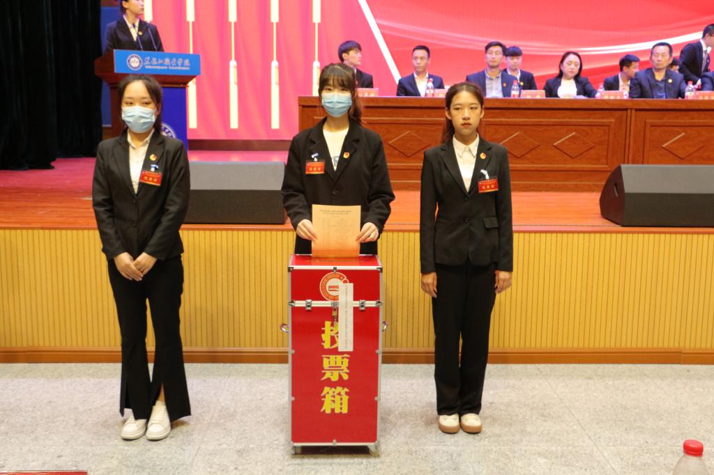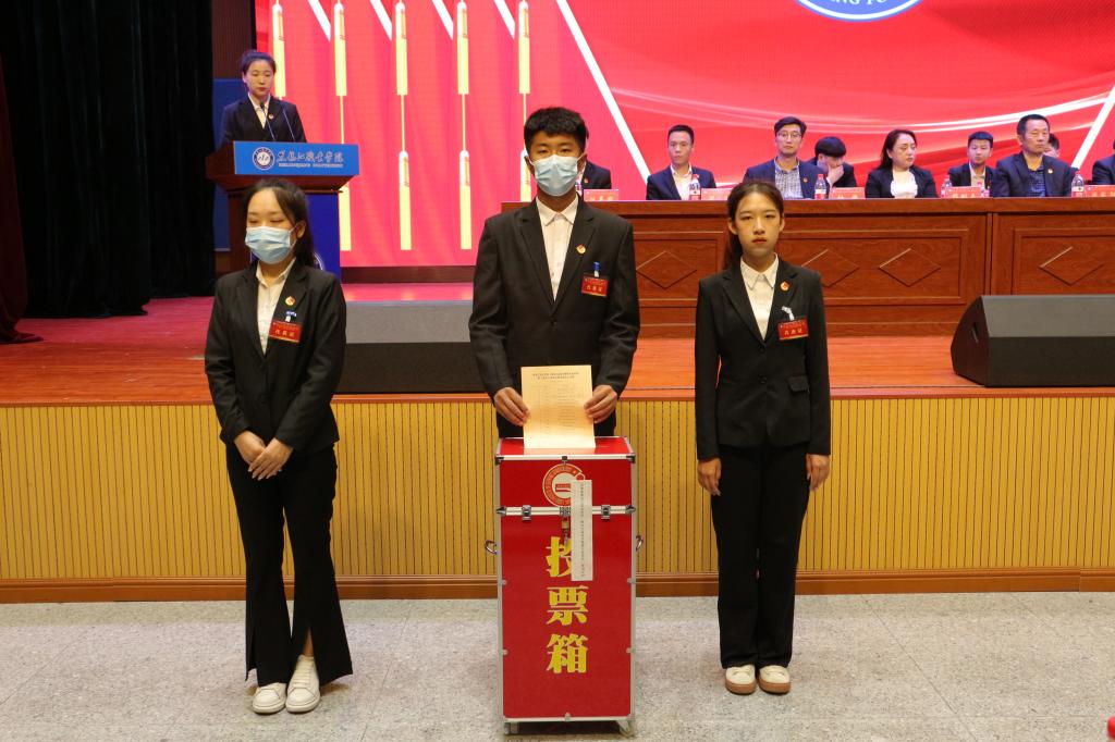 当天下午,在大会第二次全体会议暨大会闭幕式上,审议通过了《永利集团88304官网(黑龙江省经济管理干部学院)学生会工作报告》《永利集团88304官网(黑龙江省经济管理干部学院)学生会章程》等各项决议,投票选举产生了15名第二届学生委员会委员,选举产生了5名第二届学生委员会主席团成员。大会筹委会主席团成员李红瑾宣读了大会倡议书,大会倡议同学们胸怀祖国,坚定信念,把自己的青春奉献给祖国的建设和民族的振兴;倡议同学们笃志、厚德、精学、自强,忠信、乐群、务实、创新,用自己的实际行动推动良好的学风、校风建设;倡议同学们艰苦奋斗,求实创新,努力把自己锻炼成为社会主义事业的建设者和接班人。大会秘书长、校团委副书记杜超代表校团委作了闭幕致辞,在对大会圆满完成各项议程、取得丰硕成果表示祝贺的同时,对各级学生会组织和全体参会代表提出三点希望:一是强化政治引领,做新时代优秀的建设者和接班人;二是与时俱进,切实加强学生组织的自身建设;三是高度重视,加强对学生干部的监督与培养。大会在《团歌》的激昂声中圆满落幕。