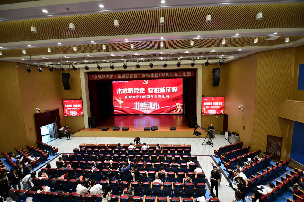 百年征程波澜壮阔,百年初心历久弥坚。为隆重庆祝中国共产党成立100周年,回望百年历史,追忆奋斗历程中的革命先辈事迹,6月25日,学校庆祝中国共产党成立100周年“永远跟党走·奋进新征程”师生文艺汇演顺利举行。学校党委书记赵继会,副校长李贵林,党委委员、副校长郑福贵,党委委员、副校长王明海,党委委员、副校长吴艳秋出席活动,学校机关党委各党支部书记,各党总支、直属党支部书记,各部门教职工代表和各二级学院学生代表等近400人在现场观看演出,第二校区全体师生通过点对点同步视频通过大屏幕观看了本次汇演的直播盛况,校团委官方抖音号“龙职青年”同步全程进行了线上直播,线上线下一万余名师生共同感悟百年奋斗历程,传承党的光荣传统,在新征程中激发奋进力量。
