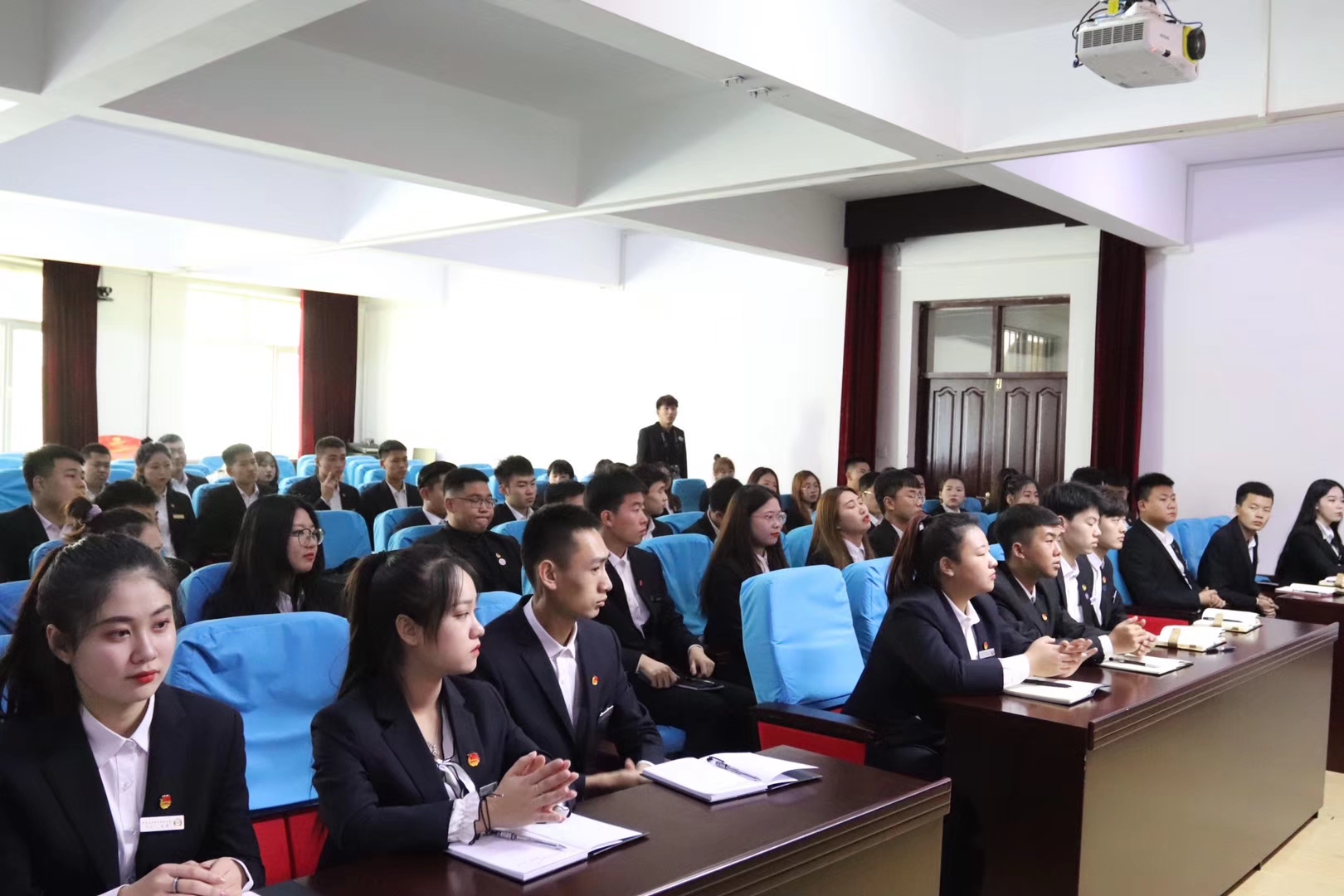 10月26日,学校召开一、二校区团学组织主席团联席会工作会议。校团委书记邹春雷,副书记于满昌,团委学生副书记陈宇航、郭思雨、戴天欣以及一、二校区77名主席团联席会成员参加会议。会议由二校区学工部教师常通主持。