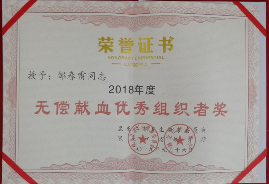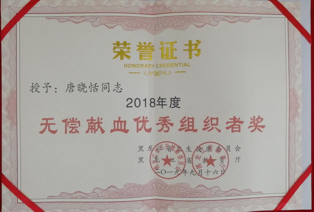 近日,省卫生计生委、省教育厅联合发文,表彰我省中高等学校2018年度无偿献血工作先进单位和个人,永利官网荣获“无偿献血先进单位奖”;校团委书记邹春雷、组宣办主任唐晓恬分别荣获“无偿献血优秀组织者奖”。