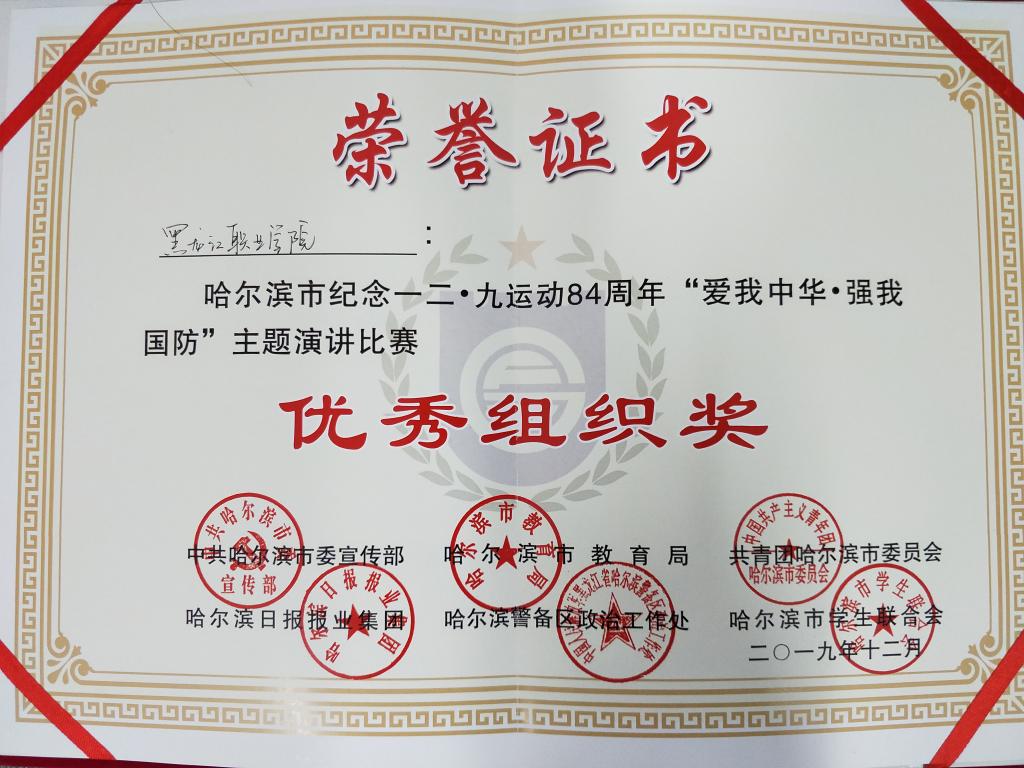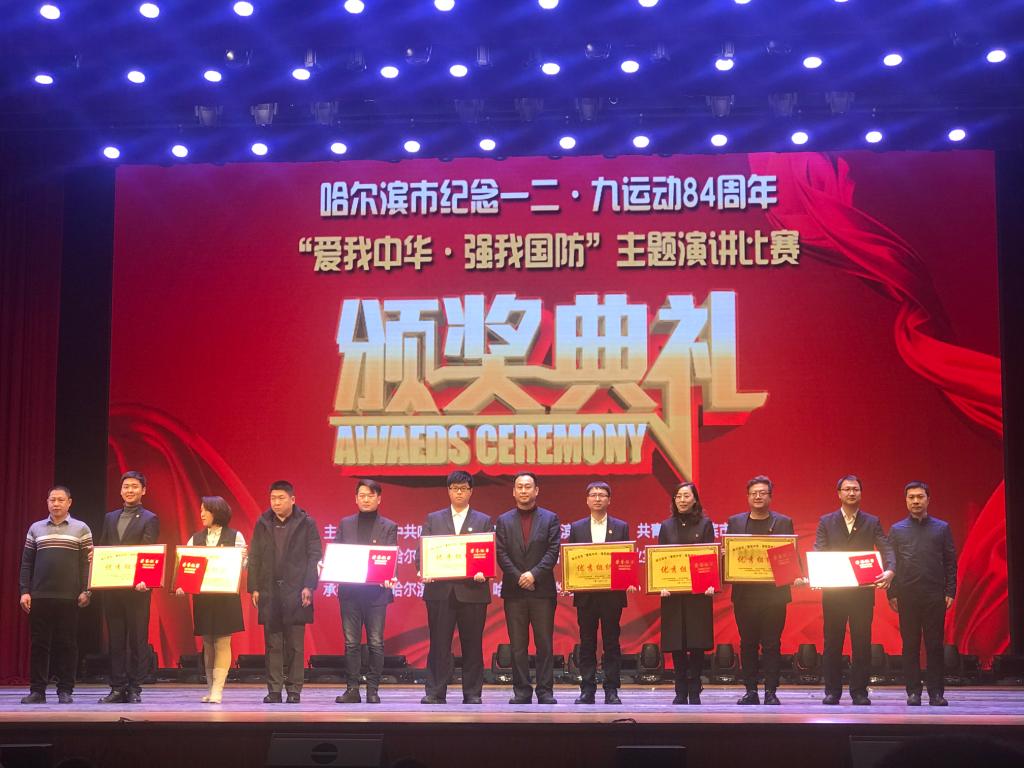 12月9日,哈尔滨市纪念一二·九运动84周年“爱我中华·强我国防”主题演讲比赛在哈尔滨青年宫举办。大赛由中共哈尔滨市委宣传部、哈尔滨市教育局、共青团哈尔滨市委员会、哈尔滨警备区政治工作处、哈尔滨日报报业集团主办,哈尔滨青年宫、哈尔滨市学生联合会承办,来自哈尔滨市属高校的12名选手以及600余名学生参加了活动,永利官网由团委书记邹春雷率队参加大赛,并获得多个奖项。