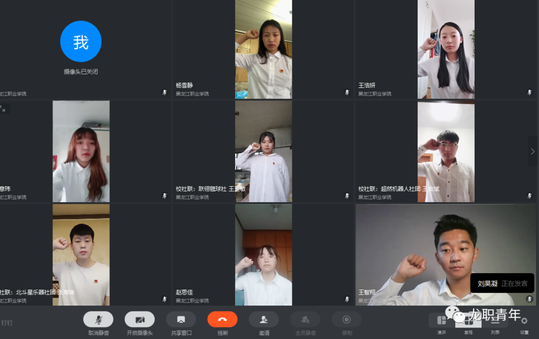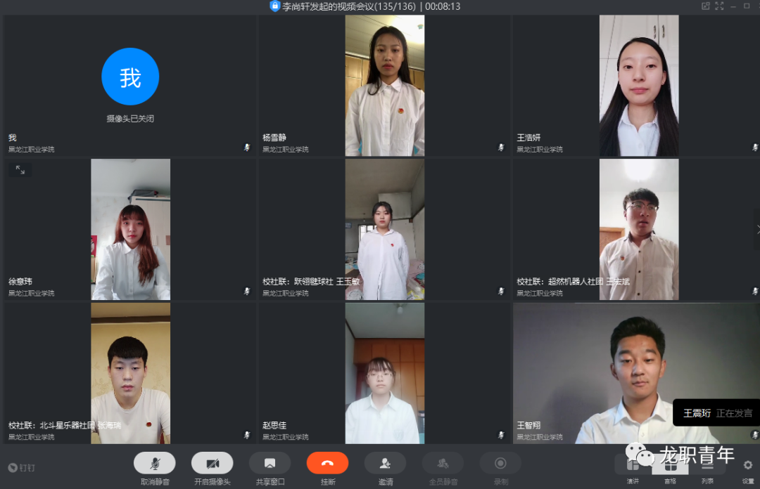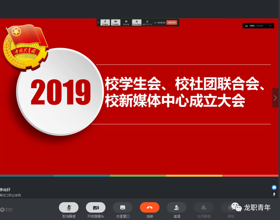 6月1日-9日,校团委开展了2019级校学生会、校大学生社团联合会、校大学生新媒体中心主要学生干部的换届改选和竞聘上岗工作。6月10日下午,2019级校学生会、校大学生社团联合会、校大学生新媒体中心云端成立大会在“钉钉”平台召开,校团委书记邹春雷、副书记杜超、组宣办主任唐晓恬出席会议,2018级学生副书记陈宇航、郭思雨,2019级学生副书记李尚轩、刘丽利和2019级学生干部136人参加会议。会议由刘丽利主持。