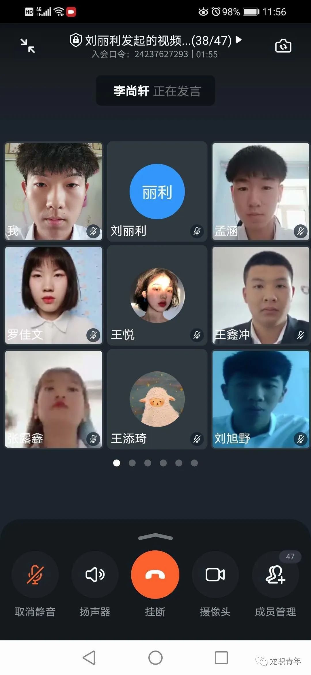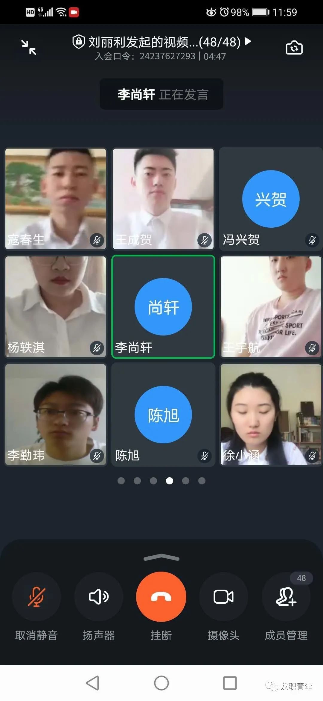 6月12日中午,2019级校院两级学生组织主席团联席会成立大会在“钉钉”平台上召开。校团委书记邹春雷出席会议,学生副书记李尚轩、刘丽利和来自校学生会、校社团联合会、校新媒体中心、校学生纪管委、校学生公寓委、校学生军操委、校学生关心委、校学生综合委、校学生信息委、校学生伙食委以及各分院团总支副书记、学生会主席、社联主席等43名2019级学生干部参加了会议。会议由李尚轩主持。