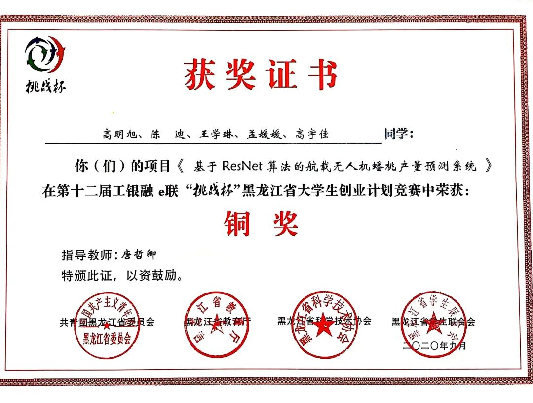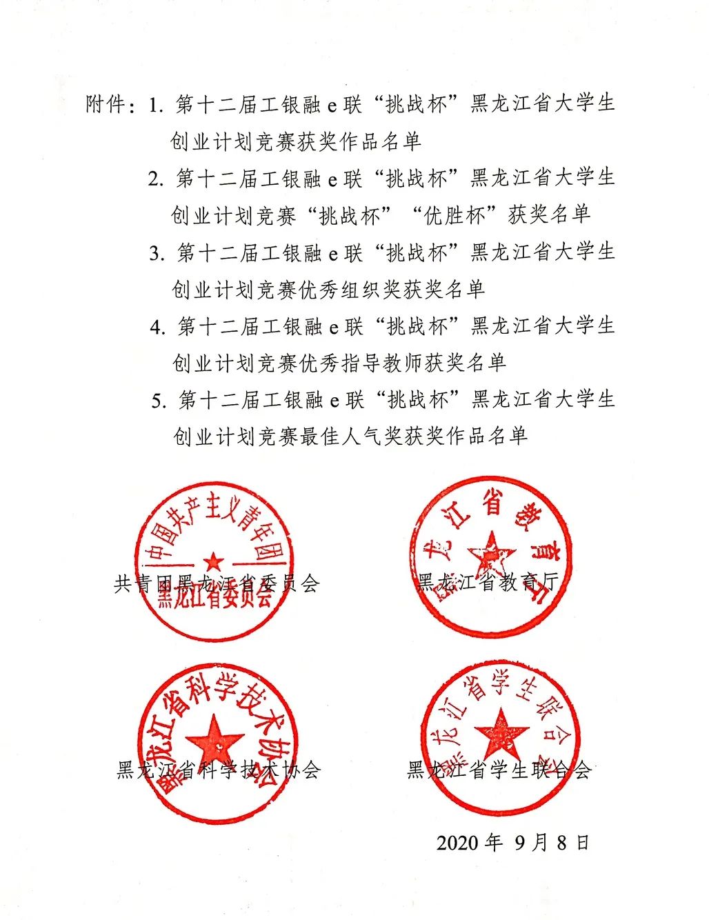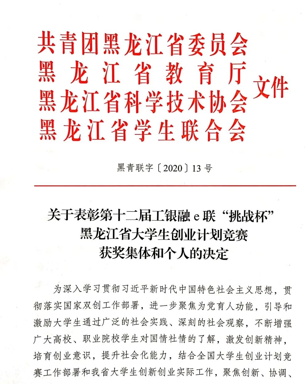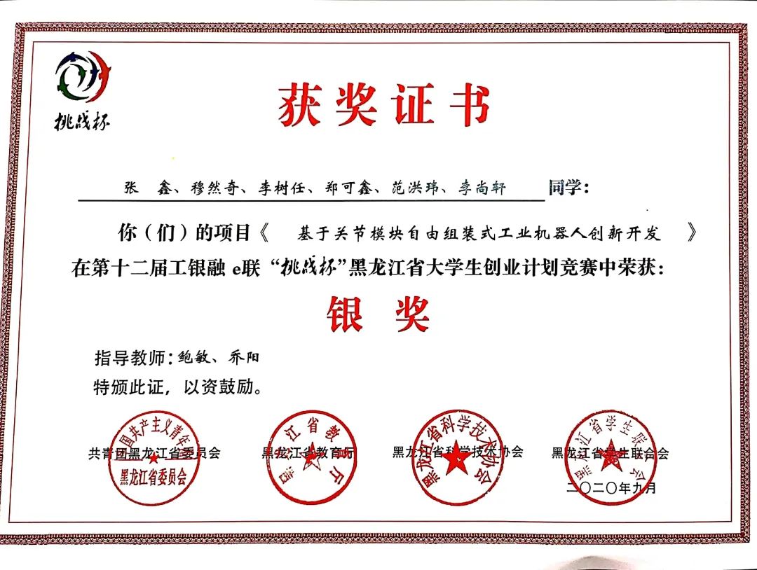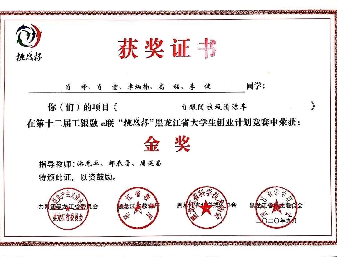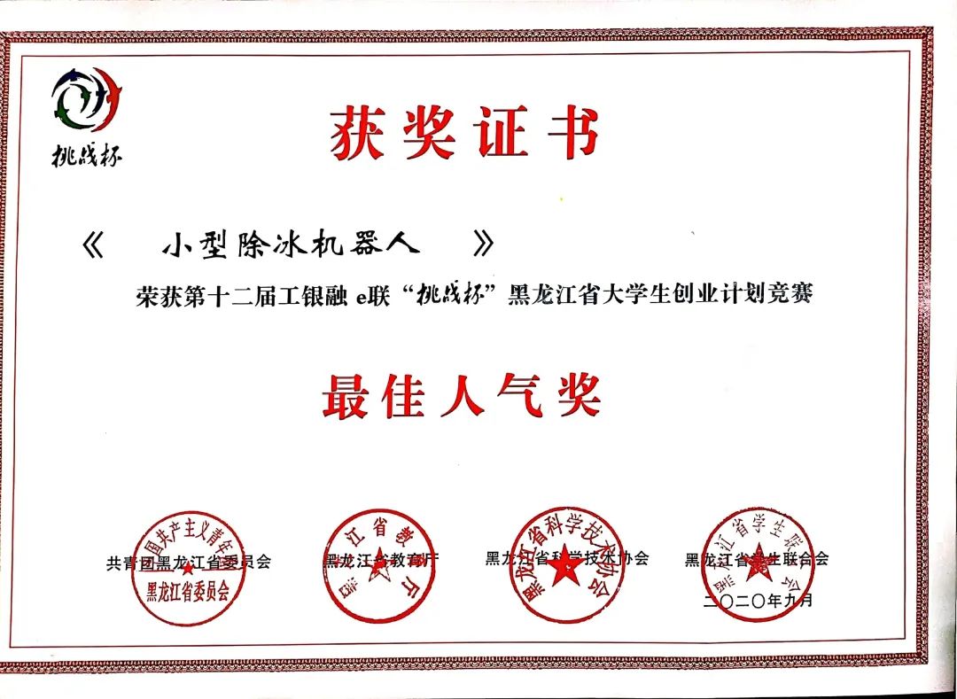 9月8日,团省委、省教育厅、省科学技术协会、省学生联合会联合印发了《关于表彰第十二届工银融e联“挑战杯”黑龙江省大学生创业计划竞赛获奖集体和个人的决定》(黑青联字[2020]13号)文件,永利官网参赛项目荣获大赛金奖四项、银奖二项、铜奖三项,有三项作品被推荐至国赛,由机械工程学院教师潘胤卓指导,学生肖童负责的《小型除冰机器人》项目以总票数排名第一的成绩荣获“最佳人气奖”,永利官网荣膺大赛“优胜杯”,创造了永利官网“挑战杯”参赛史最佳成绩。