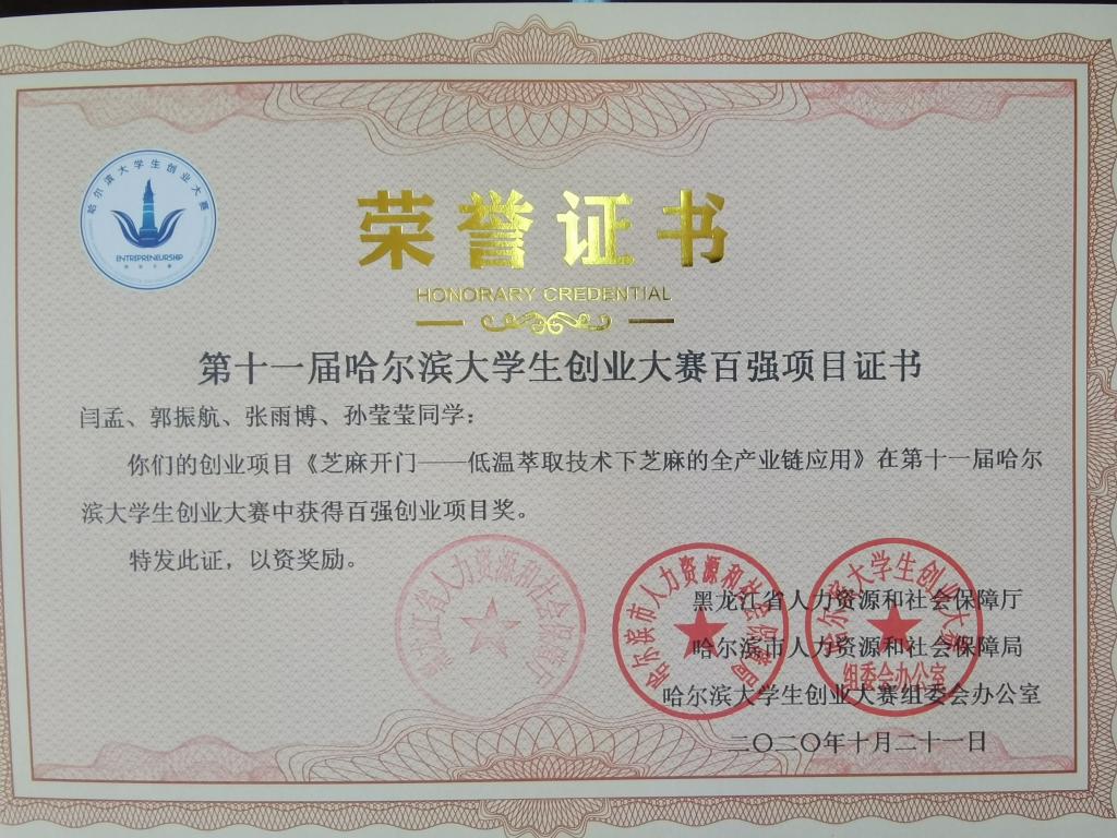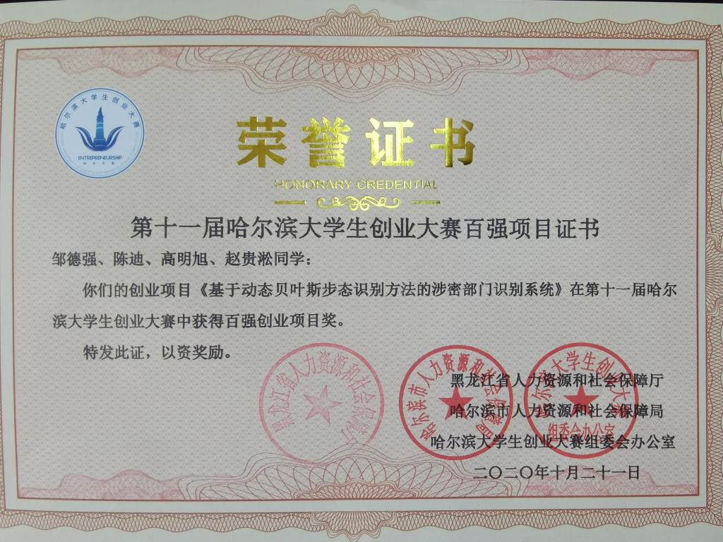 10月21日,以“创客当下,赢在未来”为主题,由黑龙江省人力资源和社会保障厅、哈尔滨市人力资源和社会保障局联合主办,哈尔滨市人才服务局承办的第十一届哈尔滨大学生创业大赛决赛圆满落幕。永利官网与哈尔滨工业大学、黑龙江大学、东北农业大学、东北石油大学、哈尔滨理工大学、黑龙江中医药大学等20所高校获得了大赛“优秀组织奖单位”。永利官网《芝麻开门——低温萃取技术下芝麻的全产为链应用》《基于改进型Adaboost算法的航载无人机水稻产量预测系统》《基于动态叶贝斯步态识别方法的涉密部门识别系统》三个创业项目荣获大赛“百强创业项目奖”称号。