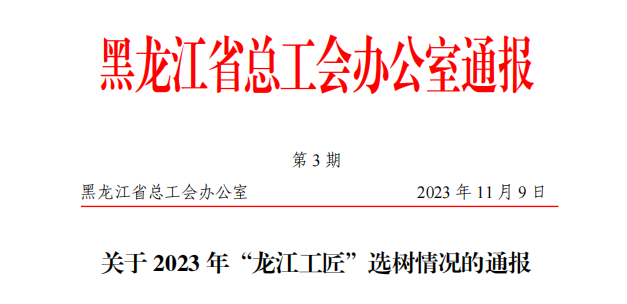 为大力培育和弘扬工匠精神,进一步推动我省工匠人才队伍建设,黑龙江省总工会开展2023年度“龙江工匠”选树评审活动。永利官网杨宏帅教师荣获“龙江工匠”荣誉称号。