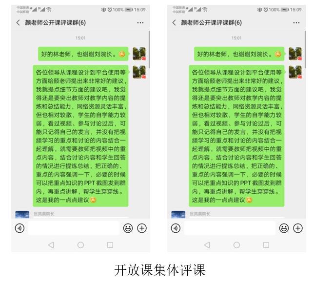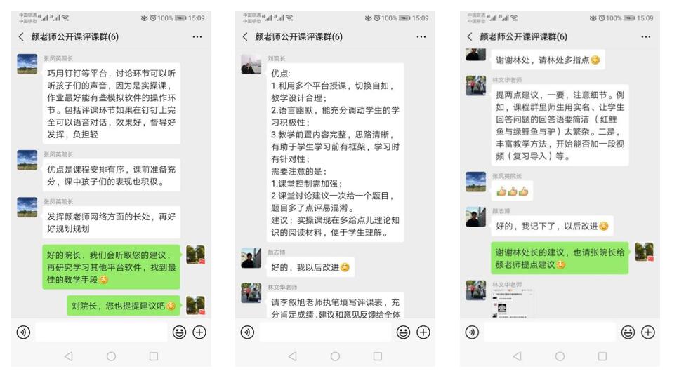 工作细致。为了交流顺畅,工作落实,建立了两级督导群、督导听课教师群、开放课评课群等。协助颜老师成功的展现了一堂精彩的学生“实操”线上开放课,课后有关人员及时进行了评课工作。