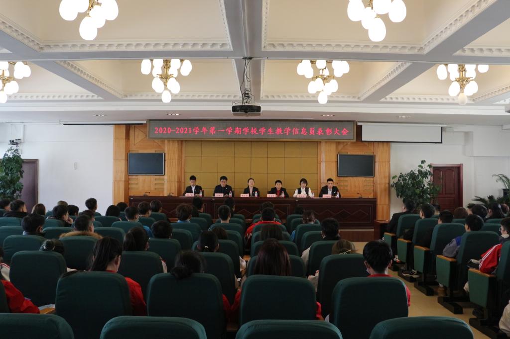 会上,张诗林作学生教学信息员工作总结。祝伯红、高金华、于博天分别宣读校级优秀学生干部、学信委优秀学生干部、优秀学生教学信息员表彰名单。大会举行隆重的颁奖仪式。优秀学生教学信息员代表韩嘉怡、王卓君,学信委主任张硕、姜海洋作表态发言。