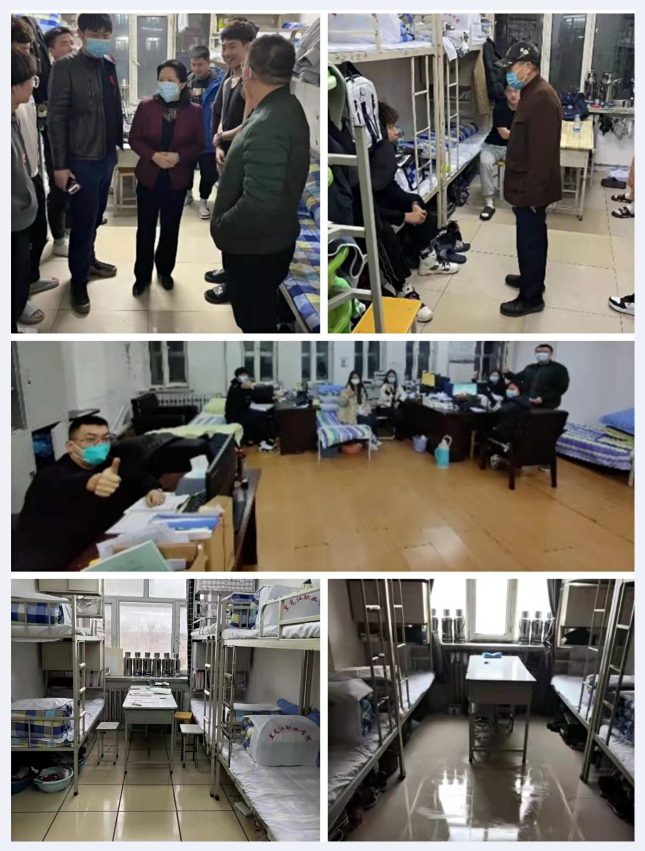 畅!内内外外的服务。面对紧张的疫情态势,校外的教职工自愿者服务组也在全力以赴奔波服务。当学生半夜高烧时,徐松岩老师护送学生前往医院做检查,一次检查需要陪同等待4小时;当学生半夜解除隔离时,徐松岩、宋海江、林泉、蒋宇楠、英鹏程、杜林、项伟东、刘洋、白宇等几位老师身着防护服随车接回隔离学生;当学生因病因事请假离校时,宋海江老师护送学生做核酸,送学生去火车站;当封闭区同志出现物资短缺时,英鹏程、刘长江老师主动及时输送物资补给;当学生有感冒症状时,周嘉瑞老师主动前去购买为学生送药品;隔居家隔离辅导员李鉴奇因病不能返校,心急如焚的她只能远程调动学生,利用手机视频为学生开展疫情防控教育。实训教师李龙、范珈源每日检查实训室安全、防火、软硬件运行状态,实训教师范珈源又是21级焊接班班主任,每有重要任务都主动冲锋在前。综合办任利军老师恪尽职守,全力做好在校隔离工作人员的后勤保障服务。