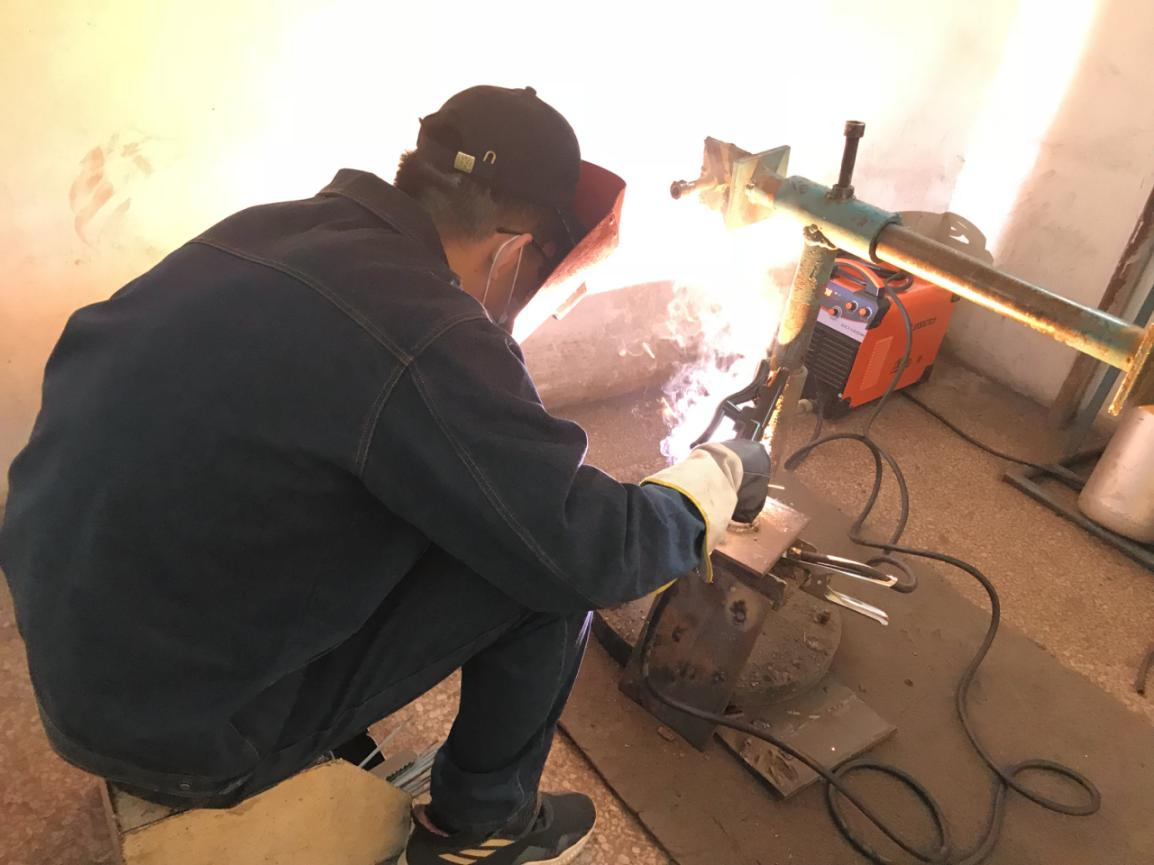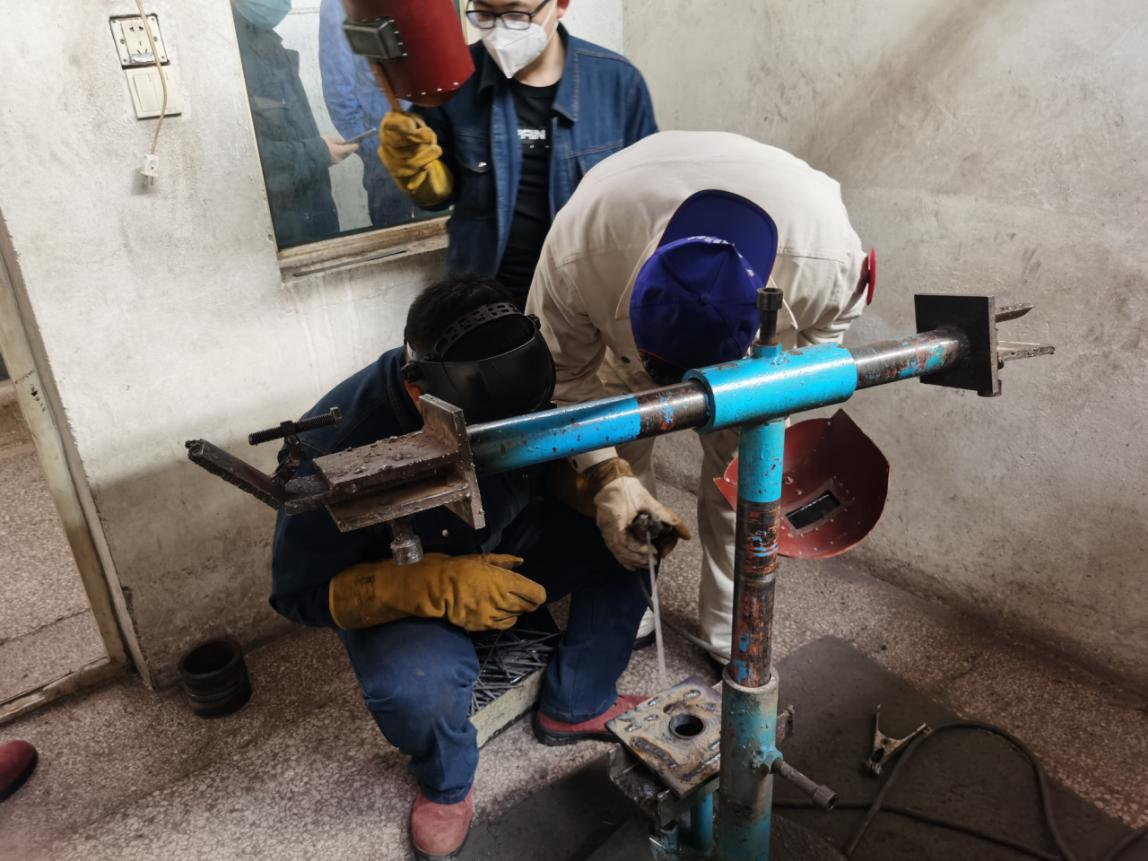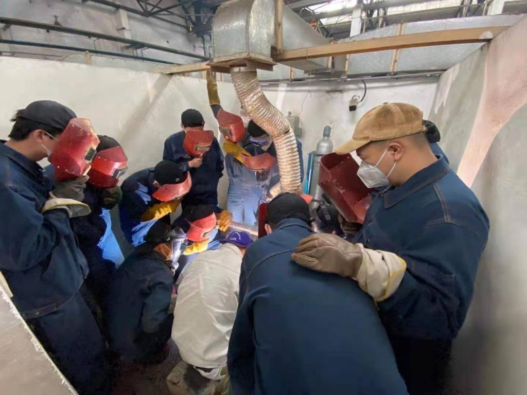 学生们熟悉了企业车间环境和见识了各种焊接设备的操作后,就作为学徒跟随着企业的师傅投入到焊接实践操作技能的学习当中。在企业师傅“龙江工匠”舒裕老师的亲身示范和亲手指导下,在车间小小的焊接工位隔断中,他们或蹲或站,一手持焊帽,一手握焊枪,反复地进行着引弧、运条、收弧的动作。经过两周的实践学习、练习,学生们的焊接手法逐渐娴熟,逐渐能够把控手中焊枪节奏,从最初的引弧粘板、收弧留坑,到现在的引弧、收弧“收放自如”,从歪歪扭扭、高低不平的焊缝,到如今基本笔直、均匀的焊缝,同学们纷纷表示找到了焊接的乐趣,感觉每天实践时光过的太快,每天都带着新的问题,都有新的目标,每日又都有新的收获。在两周的实践教学活动中,学生们真正地走近了焊接,明晰了焊接技术的重要性,懂得了焊接如绣花、是技术也是艺术,明白了焊接技术大有可为、大有作为!