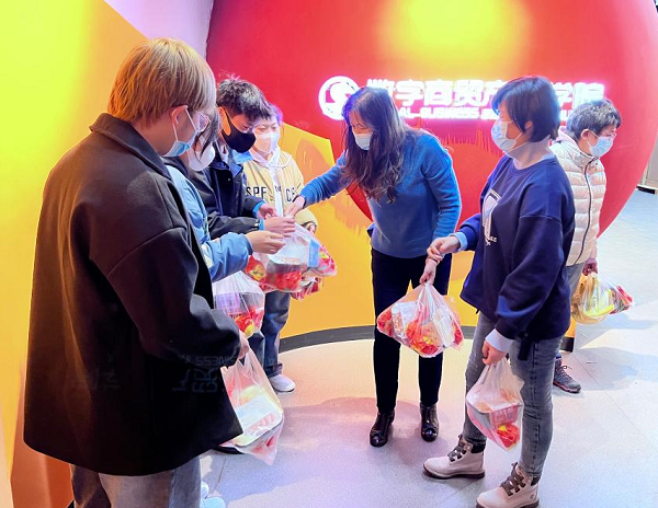 ▲教师、辅导员组织学生核酸检测,为学生带饭、打饭、采购物资