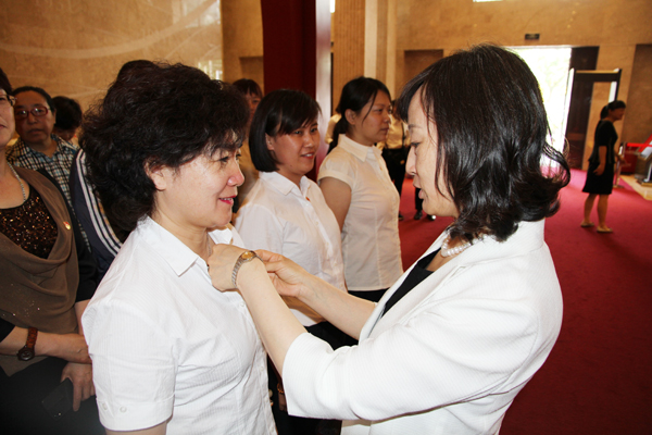 参观结束后,在鲜红的党旗下,张雨薇为6月份入党的党员同志佩戴党徽,并送上“生日祝福”,过“生日”的党员分别结合自身实际情况进行了表态发言,纷纷表示这将是非常难忘的一次“生日”。