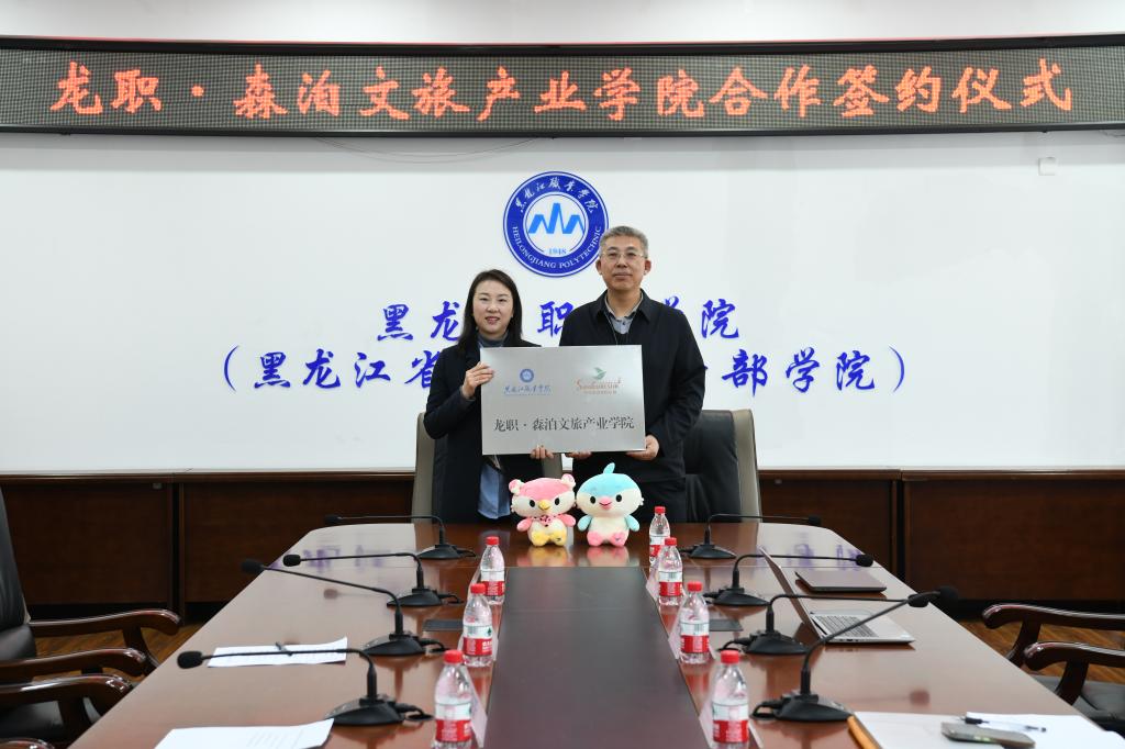 会上,王利文和陈静签署了“龙职·森泊文旅产业学院”合作协议,进行了“龙职·森泊文旅产业学院”揭牌和“开元森泊人才培养基地”授牌仪式。