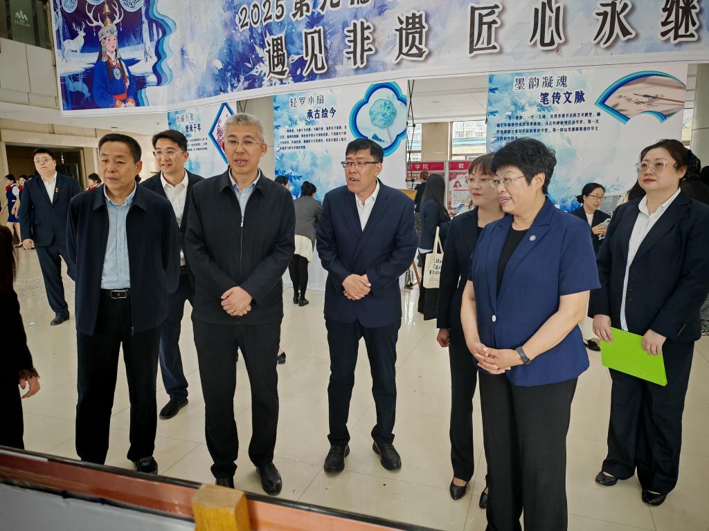 5月28日,“遇见非遗 匠心永续”第九届锦绣之路校园博览会在清华楼一楼大厅成功举办。党委书记崔治春、校长王利文、纪委书记李伟、副校长王广文、组织部部长石明杰出席开幕式并剪彩。