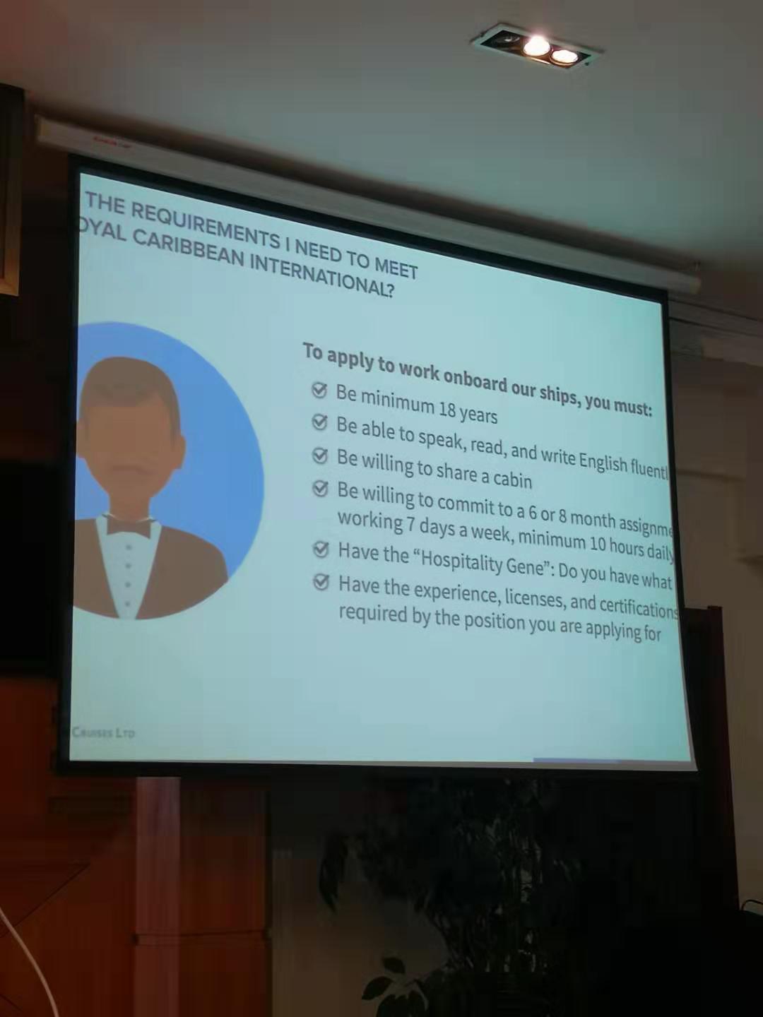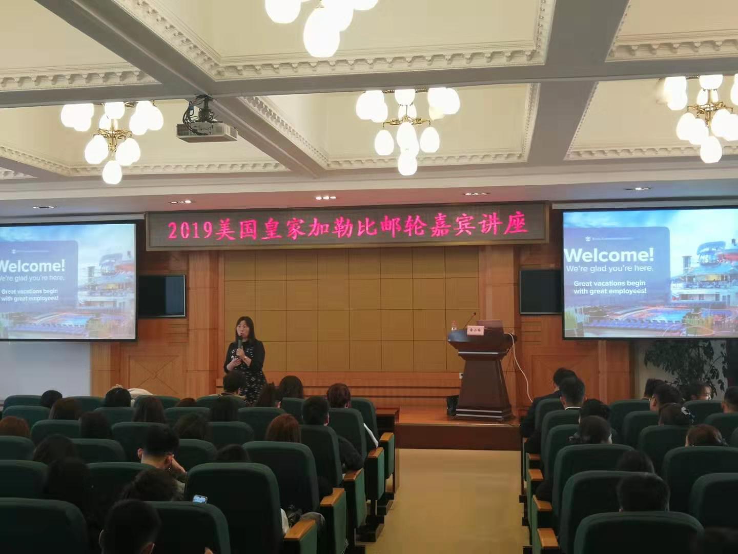 10月24日,2019美国皇家加勒比邮轮嘉宾讲座在永利官网顺利举办,美国皇家加勒比邮轮公司中国院校面试官雷小梅女士为学校旅游与人文艺术学院2018级和2019级酒店管理专业、旅游管理专业学生作精彩讲座,酒店管理专业教研室主任徐得红,专业教师谢芳、李晓松参加讲座。