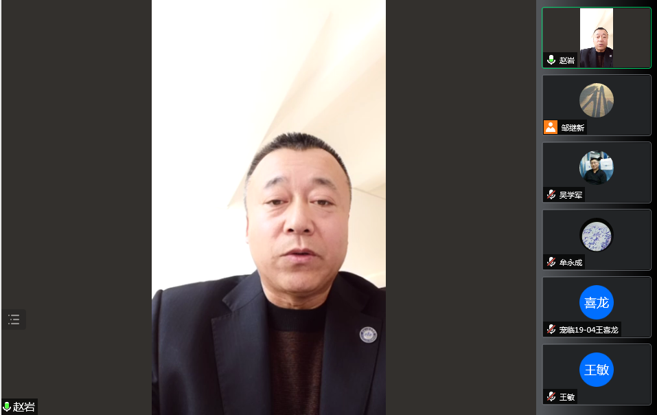 11月26日,农牧工程学院线上召开《农牧工程学院2019级“2.5+0.5”专业学生顶岗实习动员及安全教育大会》,学院2019级畜牧兽医专业、动物医学专业、宠物临床诊疗技术专业学生参加会议。教学副院长吴学军、学管副院长赵岩、教学办主任牟永成、畜牧兽医专业教研室主任孙耀辉、动物医学专业教研室主任孙洪梅、宠物临床诊疗技术专业教研室主任陈滨及负责本次顶岗实习的校内指导教师参加会议。会议由牟永成主持。