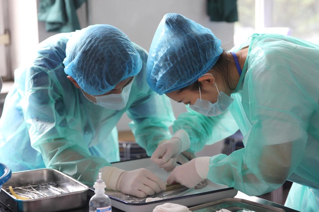 永利官网选手正在进行“肠断端吻合术”赛项比赛操作