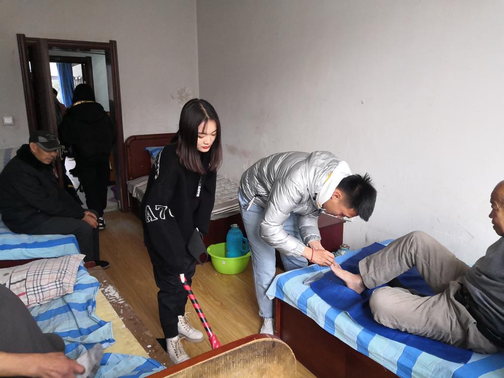 活动当天支部党员为敬老院老人带去了牛奶等慰问品,帮助老人整理内务,打扫卫生,剪指甲。志愿者们这种不怕脏不怕累的积极热情感染了每一位老人,灿烂的笑容也洋溢在了老人们的脸上。敬老服务中心院长说:“这里住的都是无儿无女的五保户190多位老人,平时是没有孩子来看望老人的,这样的场面也是很少有的,你们的到来可以说衰老无情,人间有情,不是亲人,胜似亲人。你们的亲情,使垂暮之年的老人焕发了青春,重新燃起了继续生活下去的火花,我代表院里的老人谢谢你们。”