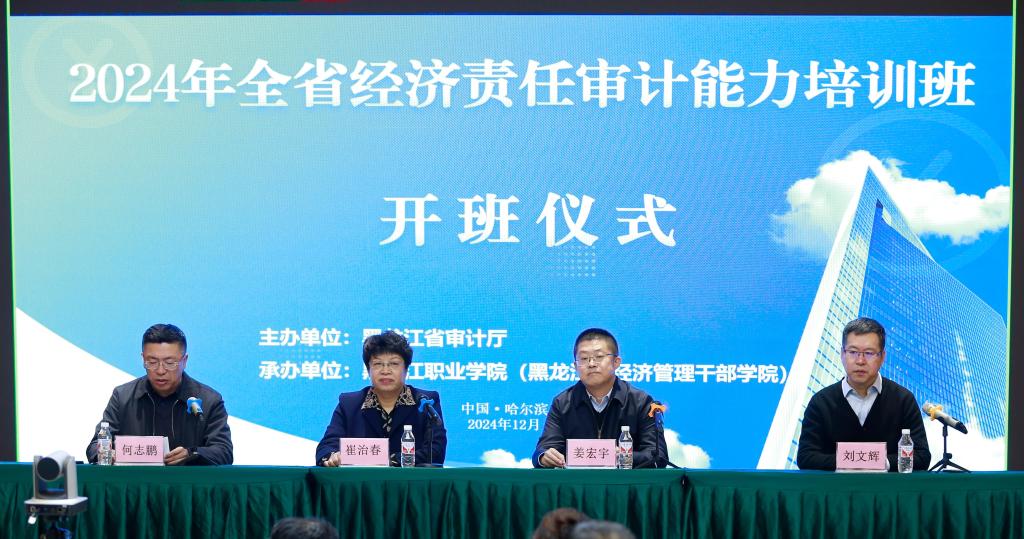 12月23日-25日,由黑龙江省审计厅主办、永利集团88304官网(黑龙江省经济管理干部学院)承办的2024全省经济责任审计能力培训班在哈尔滨市成功举办。学校党委书记崔治春出席并讲话,副校长何志鹏主持开班式,黑龙江省审计厅副厅长姜宏宇做了首场讲课。来自黑龙江省市(地)局主管经济责任审计的副职领导,经济责任审计处(科)长700余人参加培训。