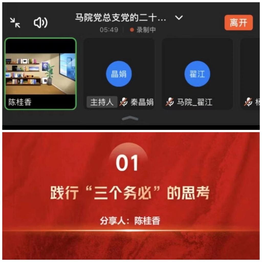 中国共产党第二十次全国代表大会是一次高举旗帜、凝聚力量、团结奋进的大会。学习宣传贯彻党的二十大精神是当前和今后一个时期全党全国的首要政治任务,马克思主义学院党总支认真贯彻落实学校关于学习贯彻党的二十大精神相关工作要求,11月11日下午在线上召开学习贯彻党的二十大精神分享会。会议由马克思主义学院党总支书记程刚主持,马克思主义学院全体教师参会。