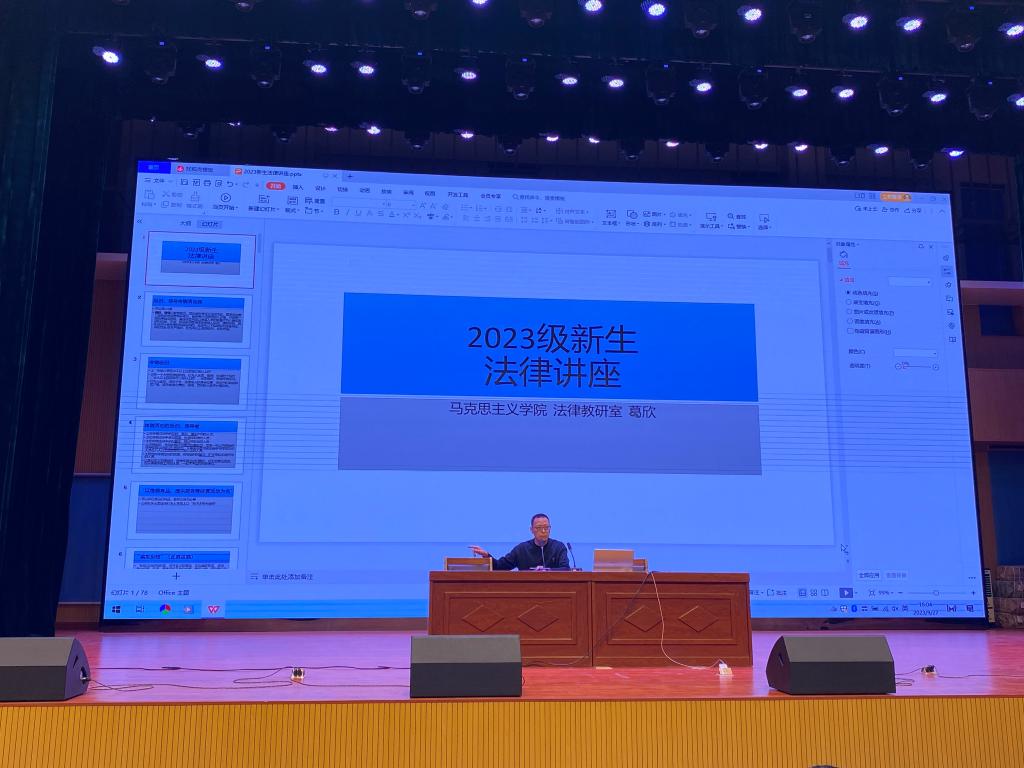 近日,为深入学习贯彻习近平法治思想,全面落实党的二十大精神,提高永利官网新生法律意识,学校举行学校2023级新生法律讲座。学生工作部部长赵彦生、马克思主义学院党总支书记程刚、智能制造技术学院副院长李焕然及6000余名新生共同凝听讲座。