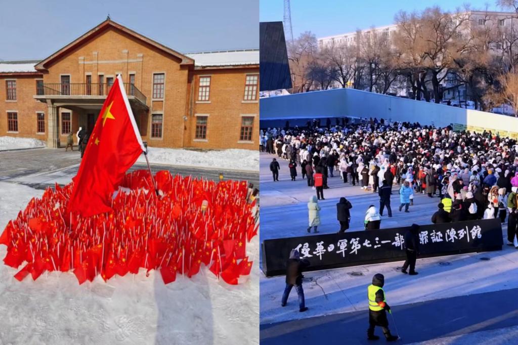 ▲侵华日军七三一部队罪证陈列馆门前游客排起长队