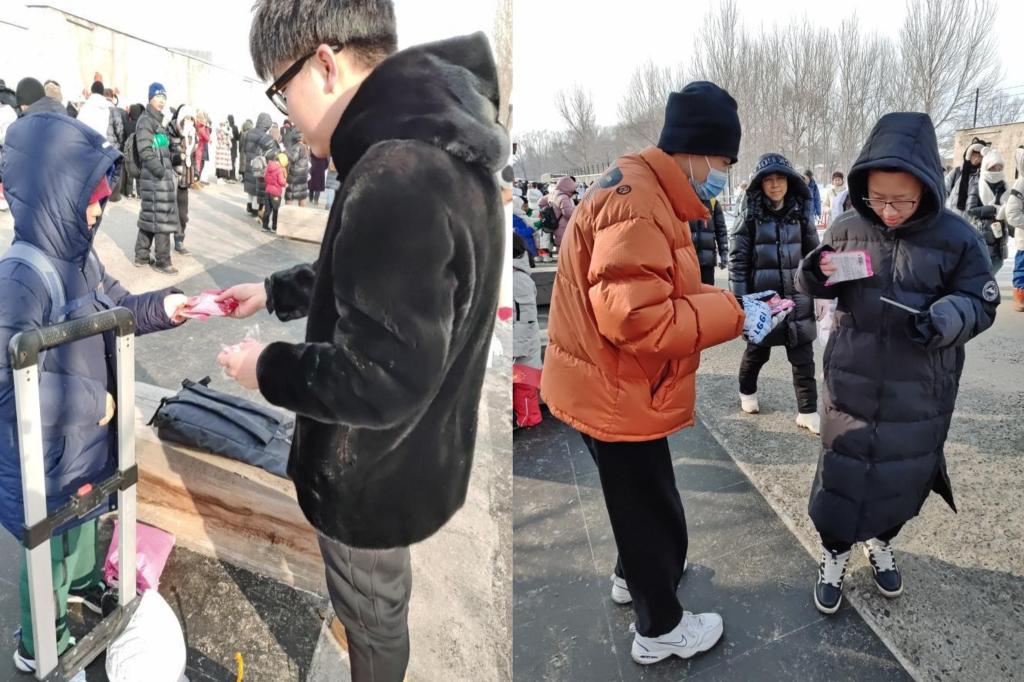 1月28日,马克思主义学院党总支书记程刚带领青年马克思主义社团学生,在七三一部队罪证陈列馆门前为游客免费发放保暖贴,用实际行动欢迎南方“小土豆”们,也为哈尔滨城市文明建设尽一份力。