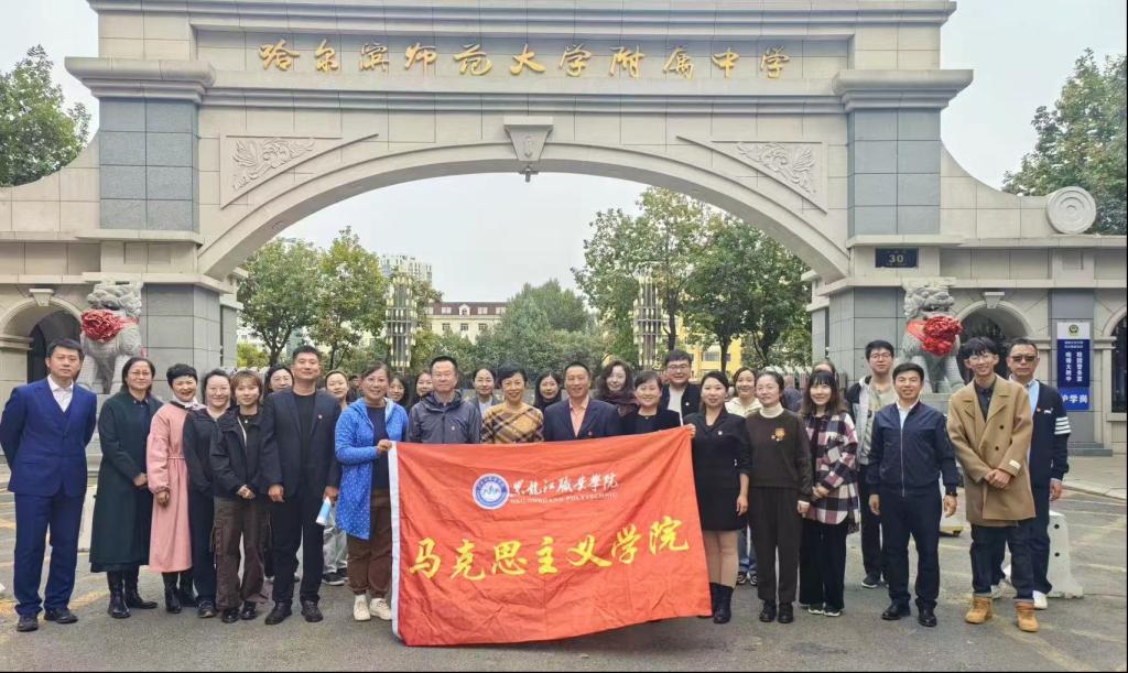 9月20日,永利官网马克思主义学院党总支书记程刚的带领全体思政课教师来到了哈尔滨师范大学附属中学交流座谈。
