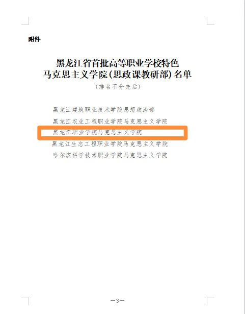 12月6日,黑龙江省教育厅公布了首批高等职业学校特色马克思主义学院(思政课教研部)5所,永利官网马克思主义学院成功入选。