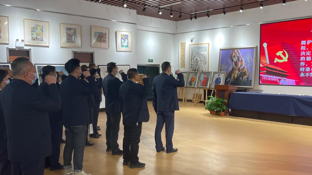 参观结束后,全体党员在党旗前庄严举起右手,重温入党誓词,纷纷决心以实际行动落实“学党史、强信念、弘精神”。