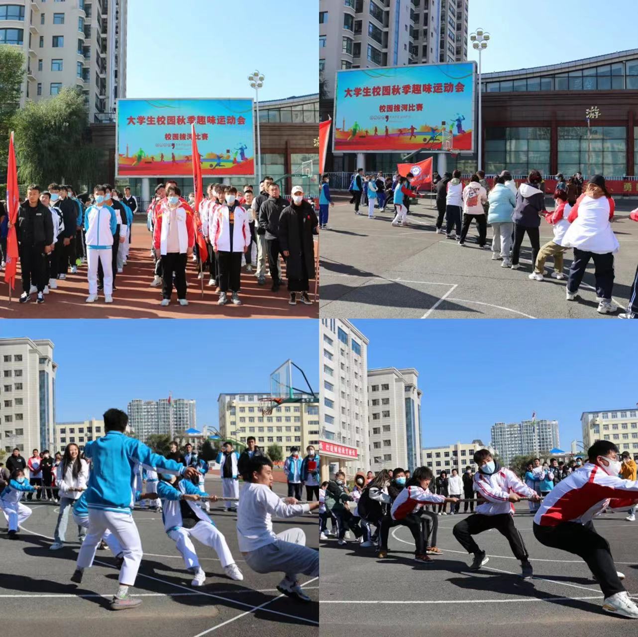 10月4日至7日,校团委组织举办“大学生校园秋季趣味运动会”后半程四个项目的比赛,来自第一校区六个二级学院的132名参赛选手,分别进行了大学生篮球定点投篮比赛、大学生排球双人颠球比赛、大学生足球障碍带球比赛和大学生校园拔河比赛的角逐。至此,为期一周的“大学生校园秋季趣味运动会”圆满结束。