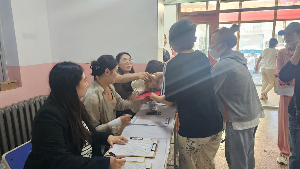 ▲党委委员、组织部部长石明杰到双城堡站看望迎新工作人员及志愿者