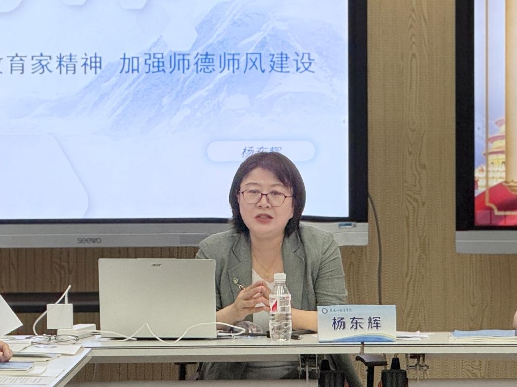 开班式上,党委委员、宣传统战部(教师工作部)部长杨东辉作开班讲话,并以“弘扬教育家精神”为题,从教育家精神的内涵、如何成为一名“四有好老师”以及新时代的实践要求等方面进行专题讲座。