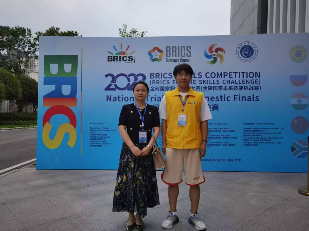 ▲卢凤伟带领学生参加金砖国际技能发展大赛荣获一等奖