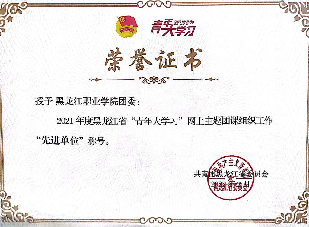 ⚪ 永利集团88304官网团委荣获2021年度黑龙江省“青年大学习”网上团课组织工作“先进单位”荣誉称号;
