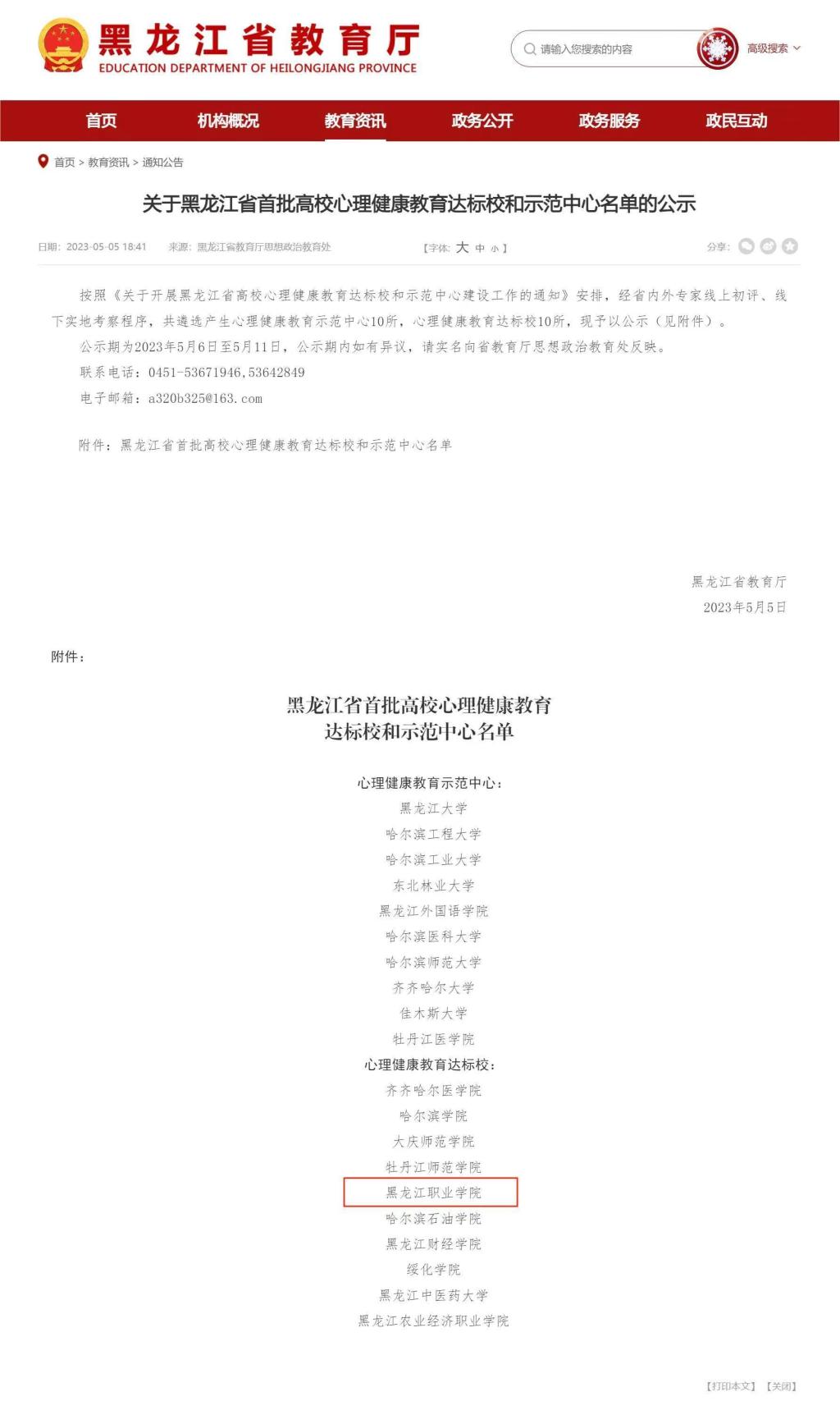 日前,黑龙江省首批高校心理健康教育达标校和示范中心名单公布,经省内外专家线上初评、线下实地考察程序,永利官网获批“黑龙江省高校心理健康教育达标校”,位列全省高职院校第一名。