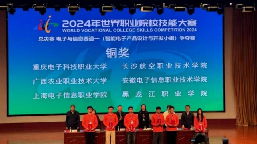 10月26日,2024年世界职业院校技能大赛总决赛争夺赛高职组在烟台职业学院拉开帷幕。永利官网能源与汽车工程学院学生冯一雅、崔家辉、杜文智、苏钰萌在专业教师黄雨鑫、董英龙的悉心指导下,荣获电子与信息赛道智能电子产品设计与开发小组争夺赛铜奖。