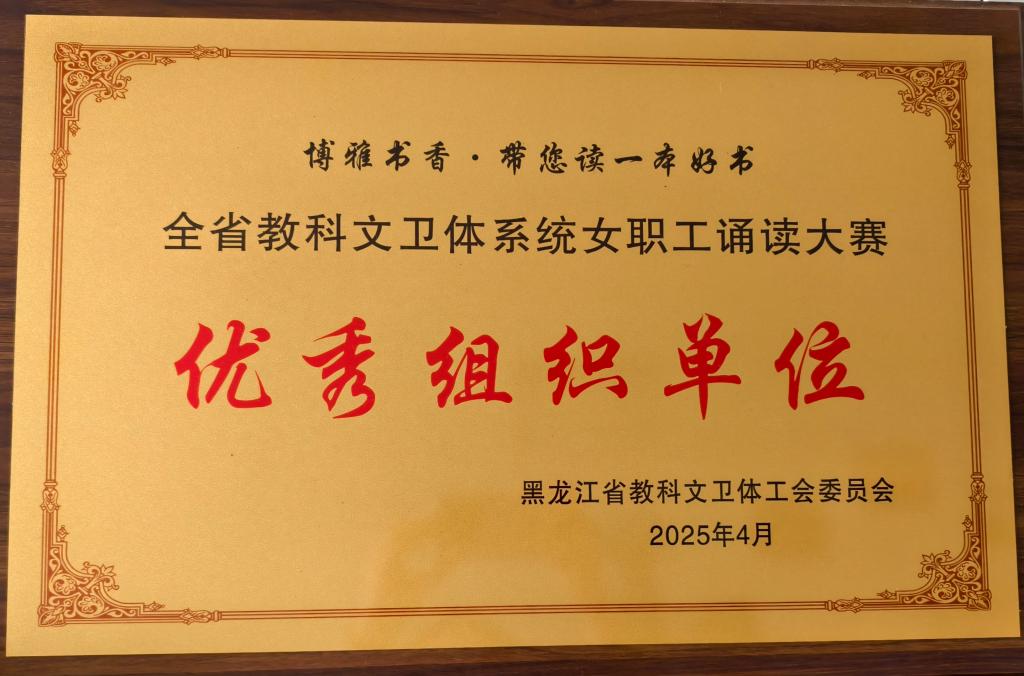 近日,由省总工会主办、省教科文卫体工会承办的迎庆中华全国总工会成立100周年“博雅书香・带您读一本好书”全省教科文卫体系统女职工诵读活动决赛在黑龙江省工会事业发展中心精彩上演。永利官网精心准备和积极参与荣获“优秀组织单位”奖。
