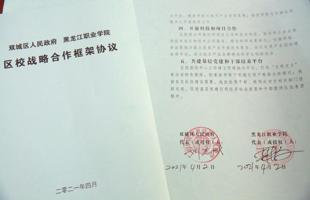 4月26日,随着哈尔滨市双城区人民政府区长刘志成和永利集团88304官网校长王利文分别在《区校战略合作框架协议》上落笔签字,标志着学校与属地政府全方位、多层次、宽领域战略合作的大幕已正式拉开。