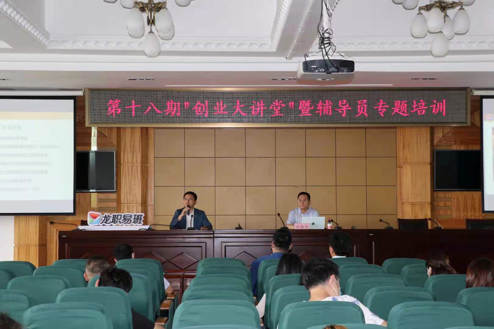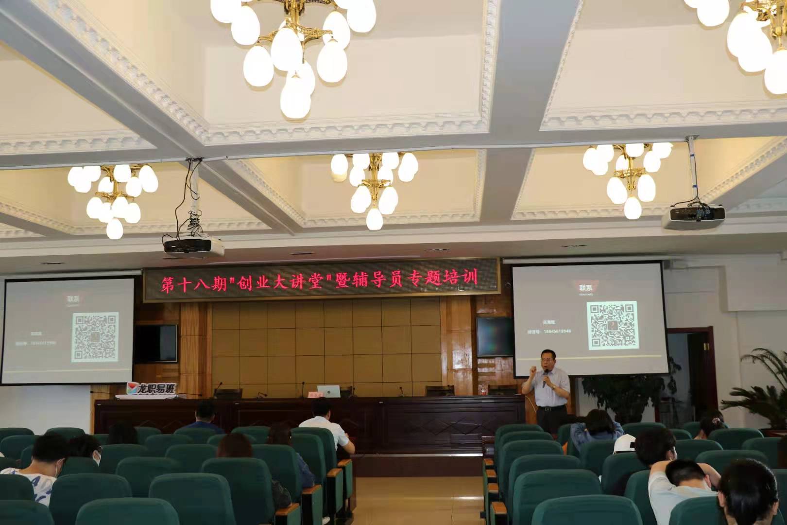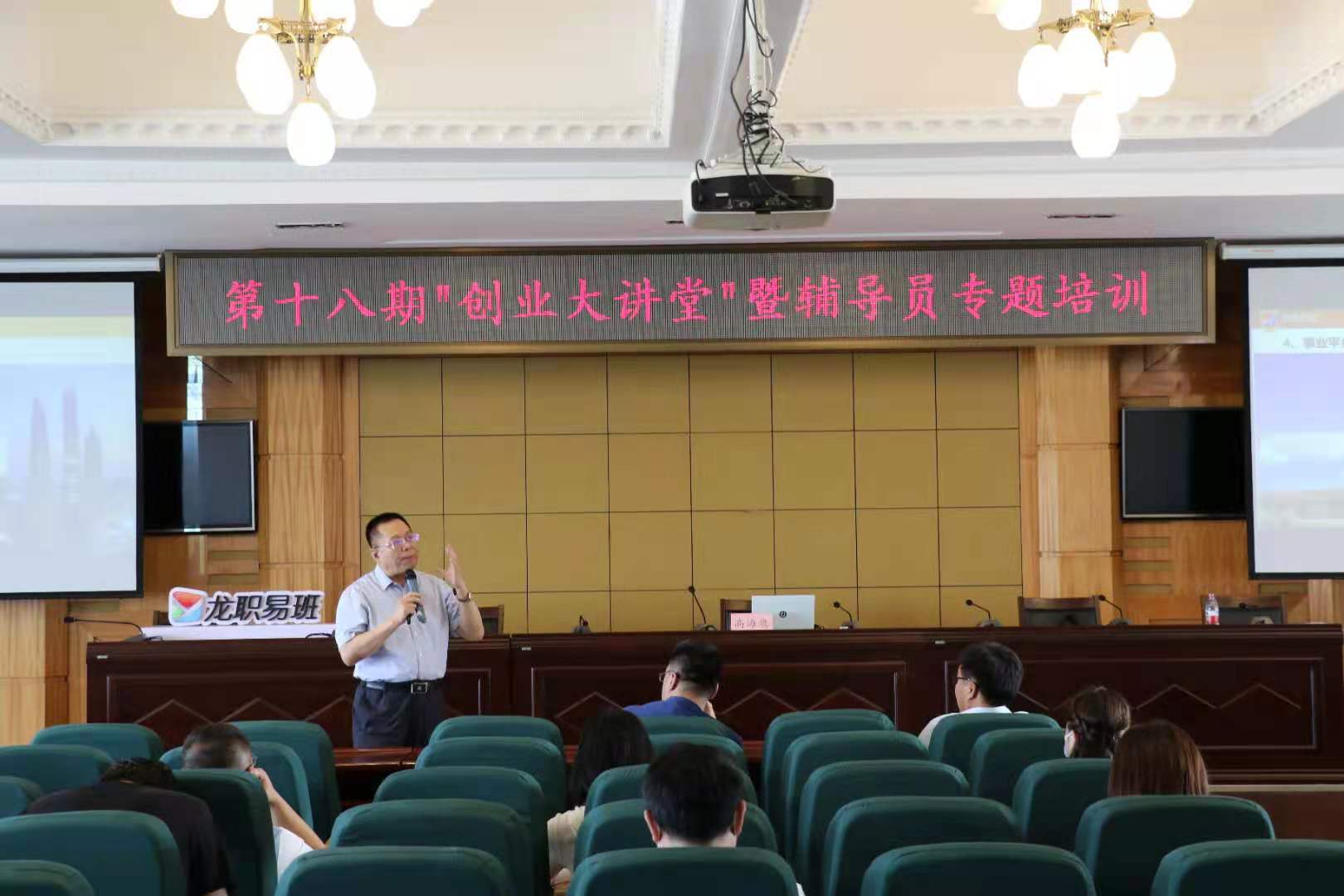 为培养学生就业创业意识和创新思维,提高学生的创新创业能力和综合素质。6月15日下午13:00,学校在清华楼报告厅举办第18期“创业大讲堂”暨辅导员专题培训。此次培训邀请了学校常年法律顾问、著名法律专家高海鹰律师作了题为“财富法宝之如何选择创业就业”的专题讲座。两校区学工干部、大二大三年级辅导员、部分学生创业者、创业大赛项目负责人等近200余人参加。培训活动由校团委书记邹春雷主持。