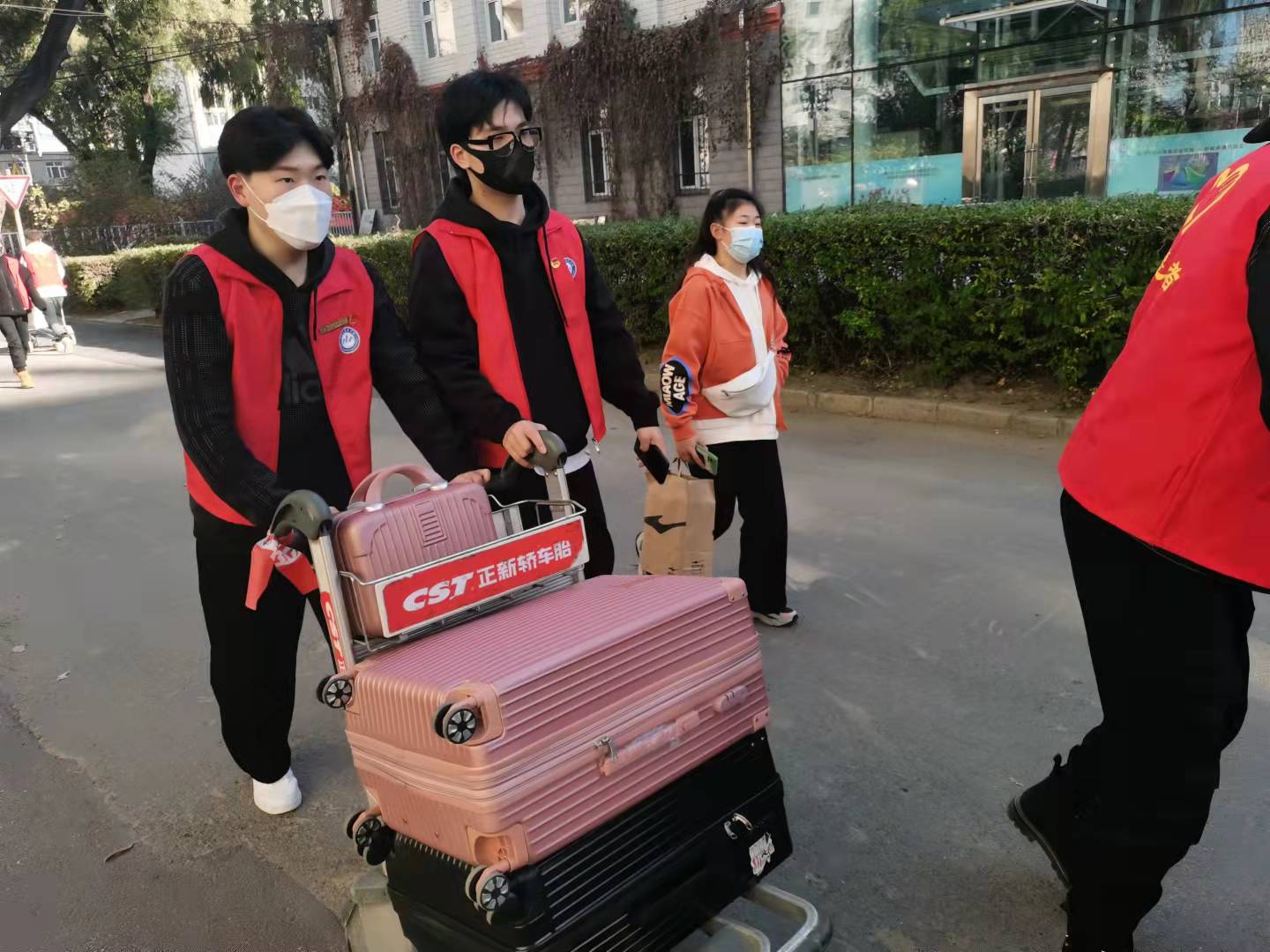 志愿者帮助新生推运行李