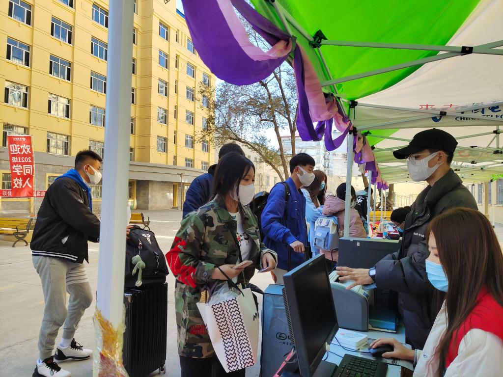 返校前,辅导员在线开展防疫教育,仔细审核每位同学的龙江健康码、大数据行程码和核酸检测报告;后勤工作人员全面进行公寓、食堂、教室等公共场所的卫生清洁和消杀;返校途中,辅导员组织学生做好疫情防护;进校过程中,工作人员严格落实各项防疫举措,在接站上校车、入校门、入公寓等环节严格落实扫码、测温、戴口罩等防疫要求;进校后全员进行核酸检测,刷身份证快捷打印报到流程单,线上办理交费手续,迎新各个环节清晰流畅,方便快捷。